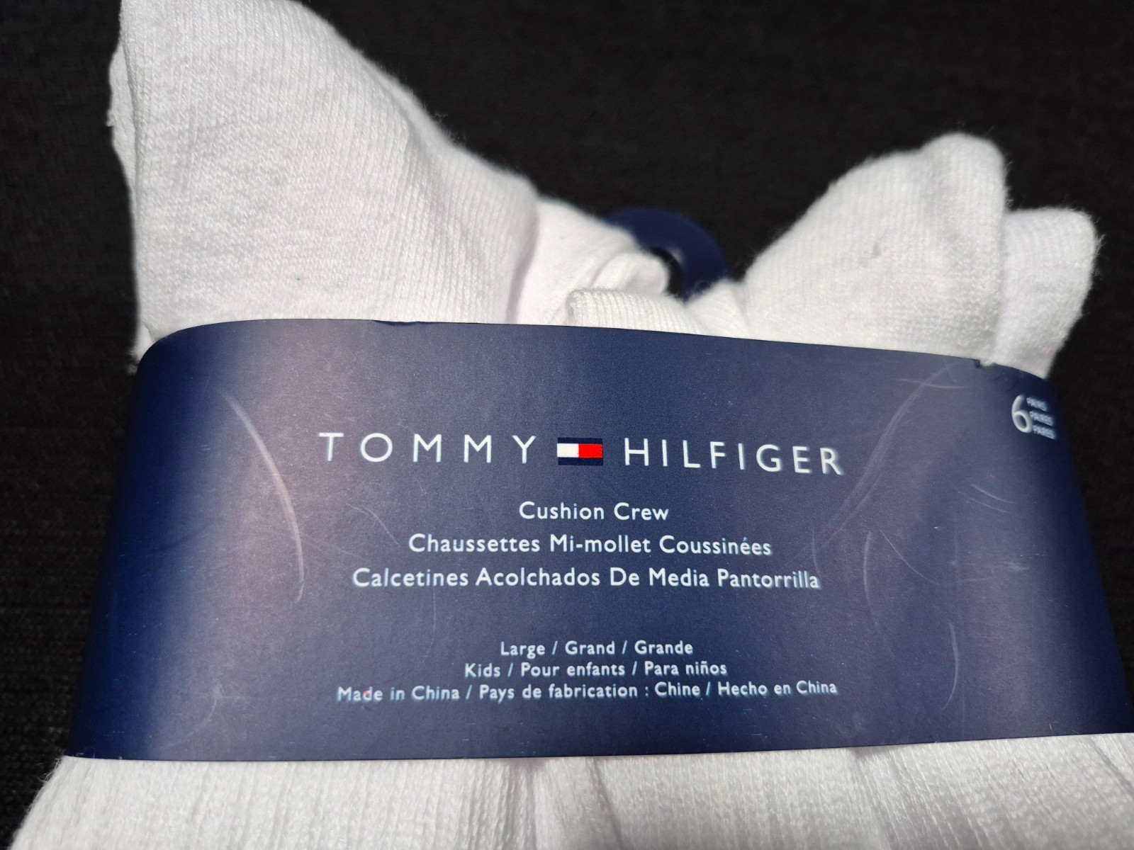 TOMMY HILFIGER Boys Socks Crew Cushioned School 6 Pairs Shoe Size 4-10
