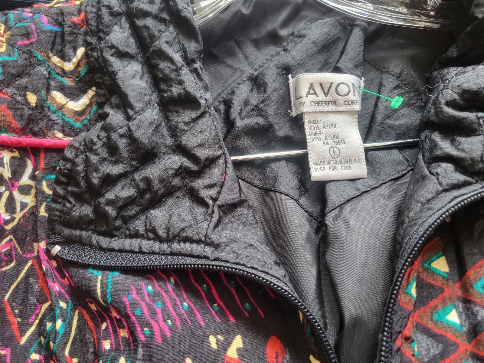Vintage Lavon Cheerful Corp Women Large 100 Nylon Track Jacket Geometric 80s 90