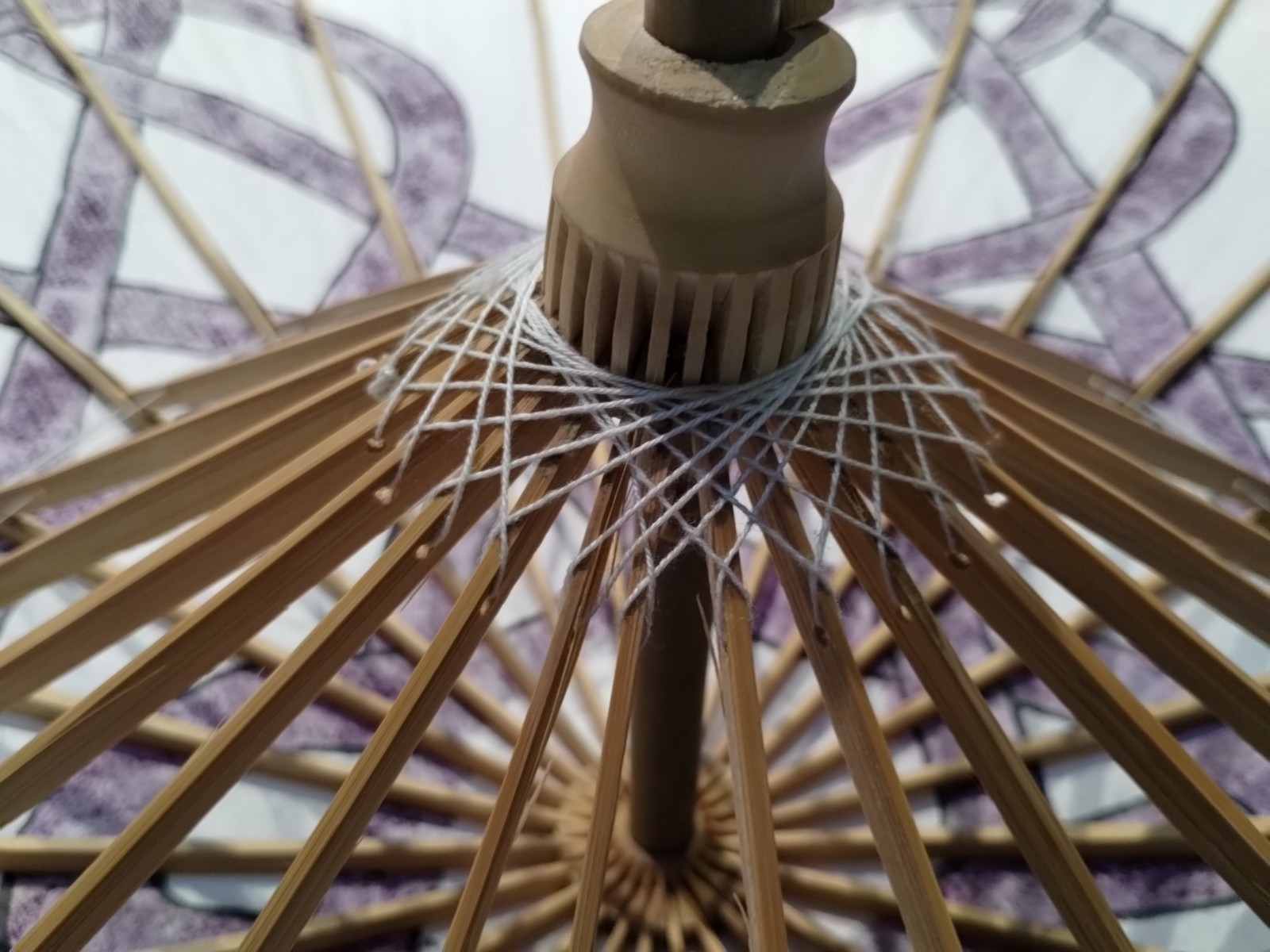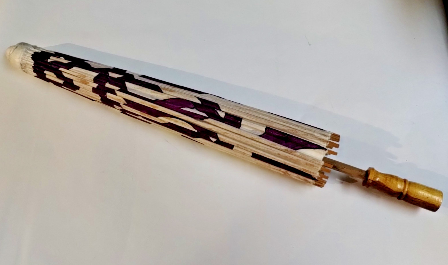 • Japanese Styled Wooden Paper Umbrella Lightweight Decorative Purple White