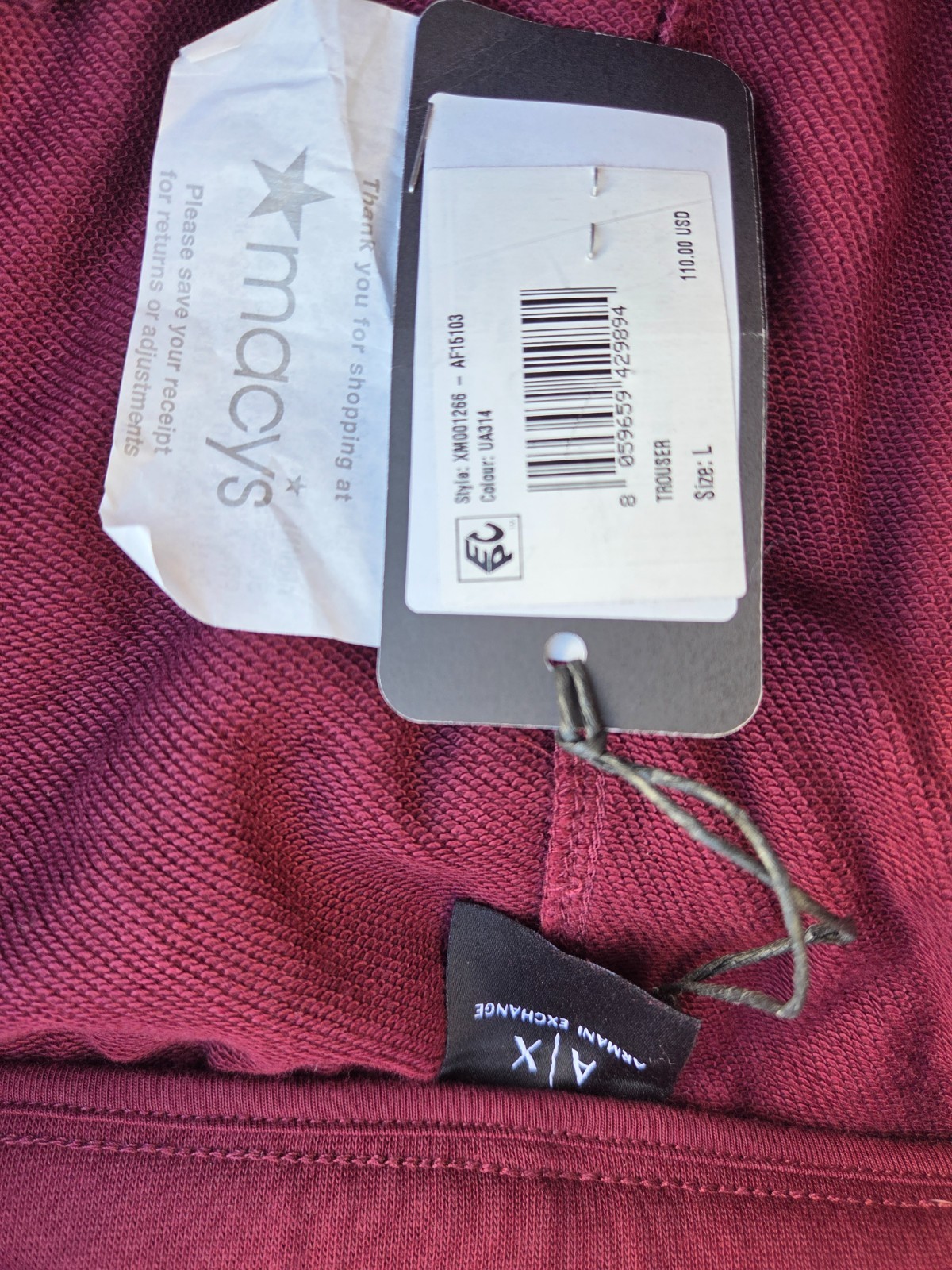 как выглядит A X Armani Exchange Men Fleece Logo Jogger Pants Burgundy Size L фото