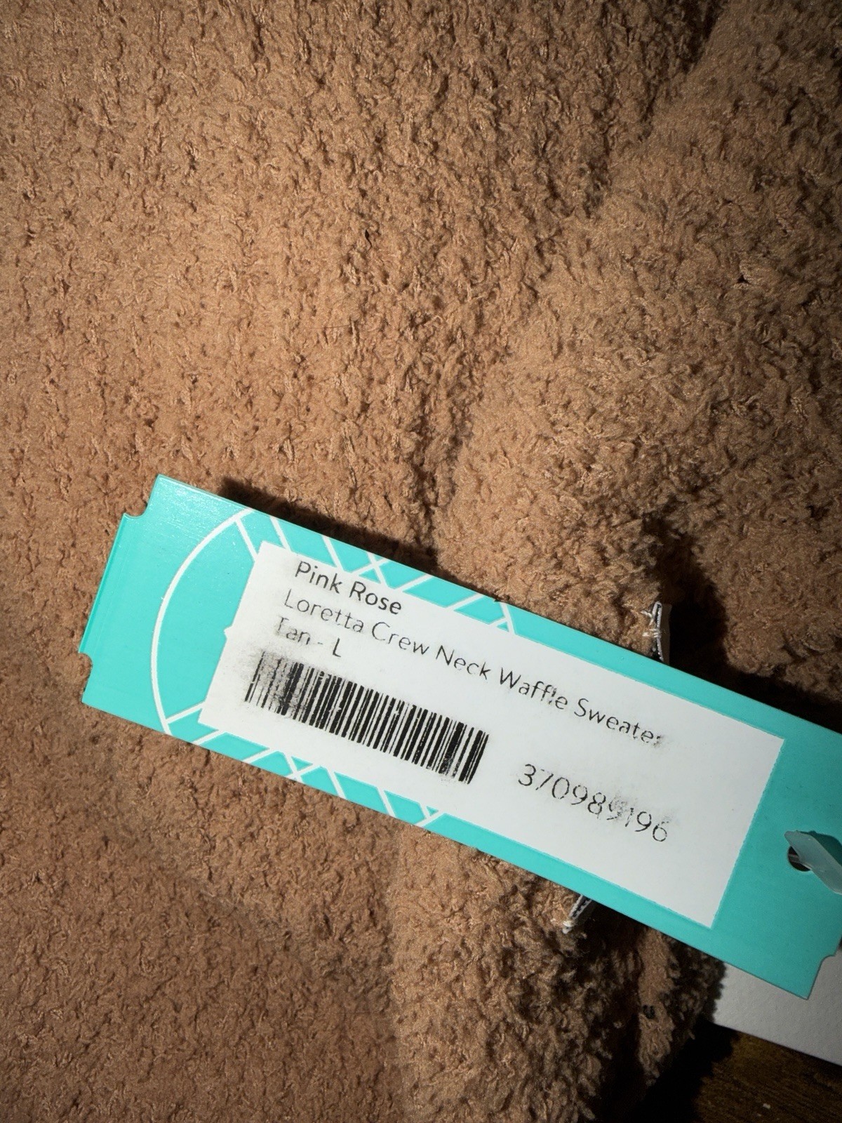 NWT Pink Rose Loretta Crew Neck Waffle Sweater - Tan Size Large