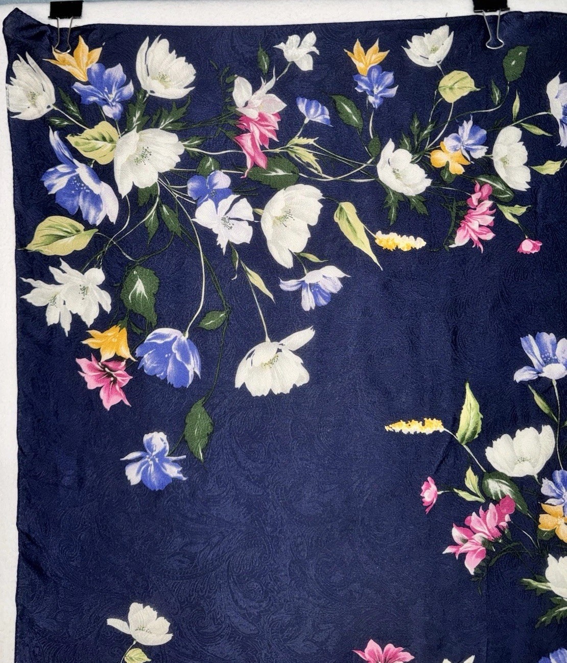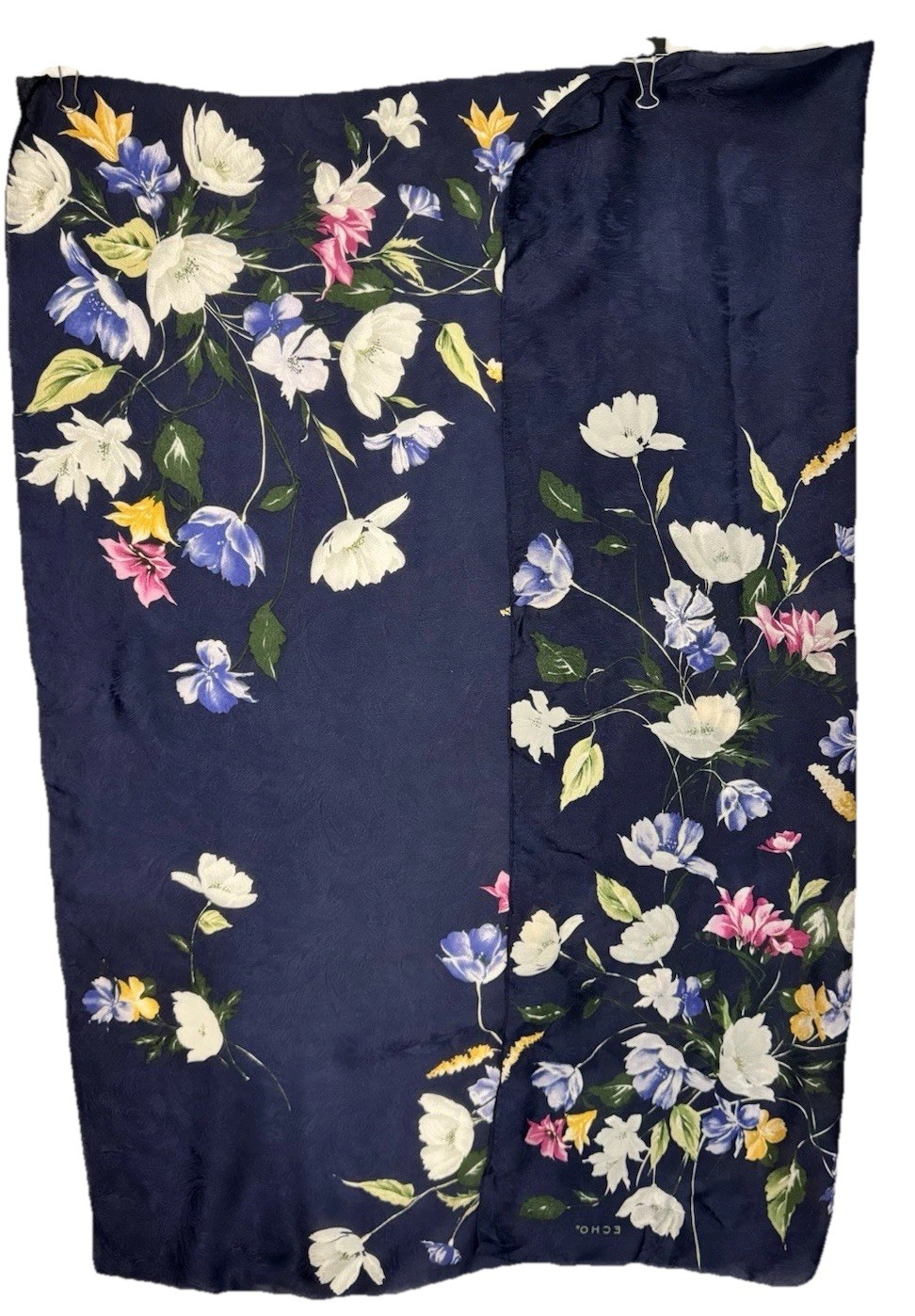 Vintage Echo Scarf 100 Silk Rectangle Floral Navy Signed Flowers