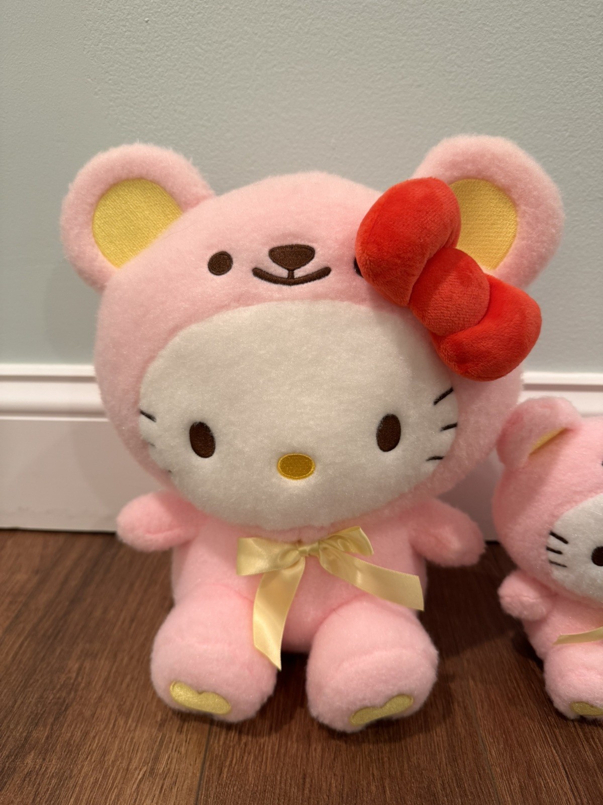 как выглядит Hello Kitty Pink Bear Costume Plush Toy Wool Boa Bear 11.8in with Mini Combo фото