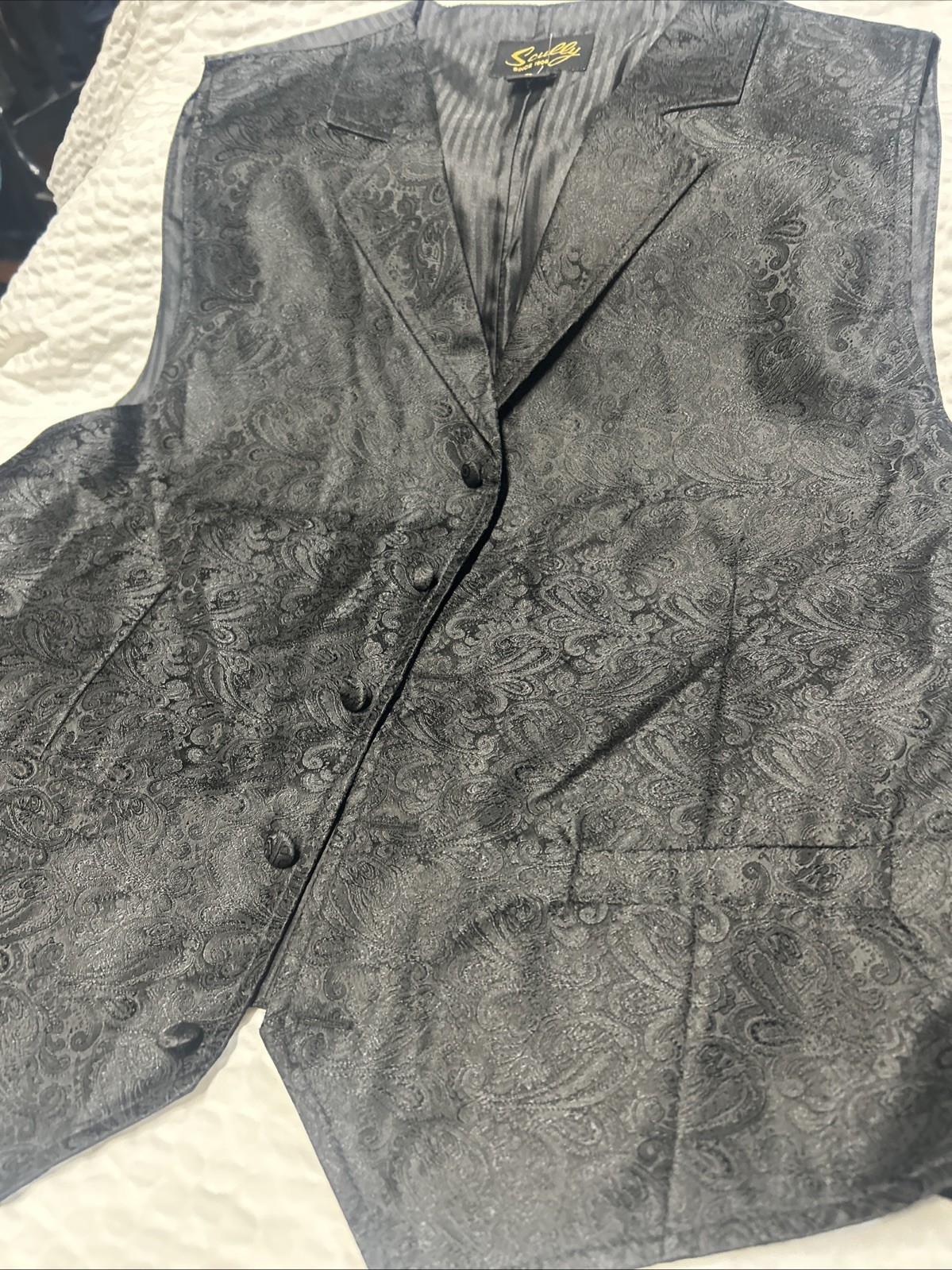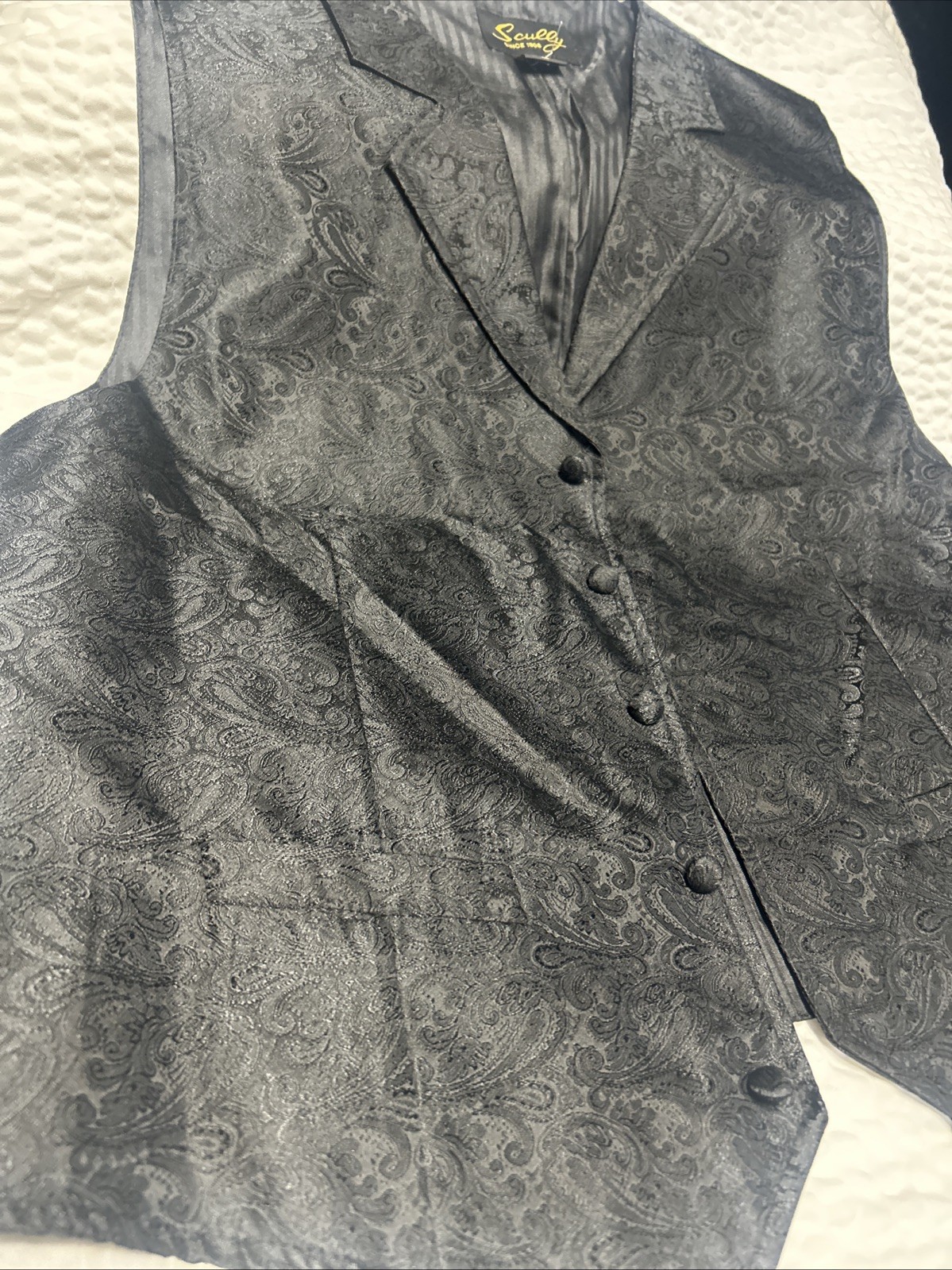 как выглядит Scully Men s Vest 100 Polyester Black With Black Paisley Pattern Extra Large фото
