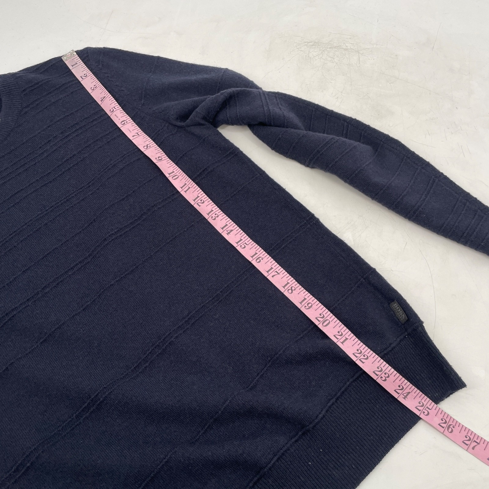 как выглядит Hugo Boss Men S Finest Italian Yarn Pullover CrewNeck Navy sweater cashmere wool фото