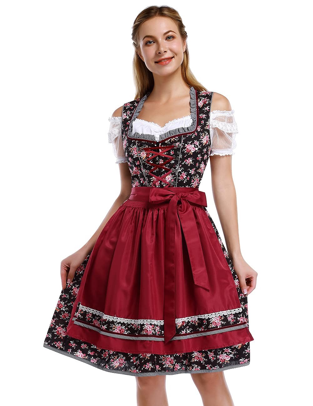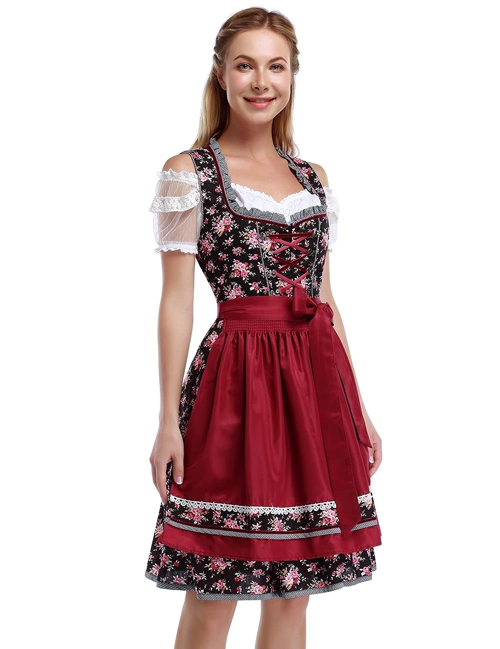 KOJOOIN Women's German Dirndl Dress Costumes for Bavarian Medium, Burgundy-24