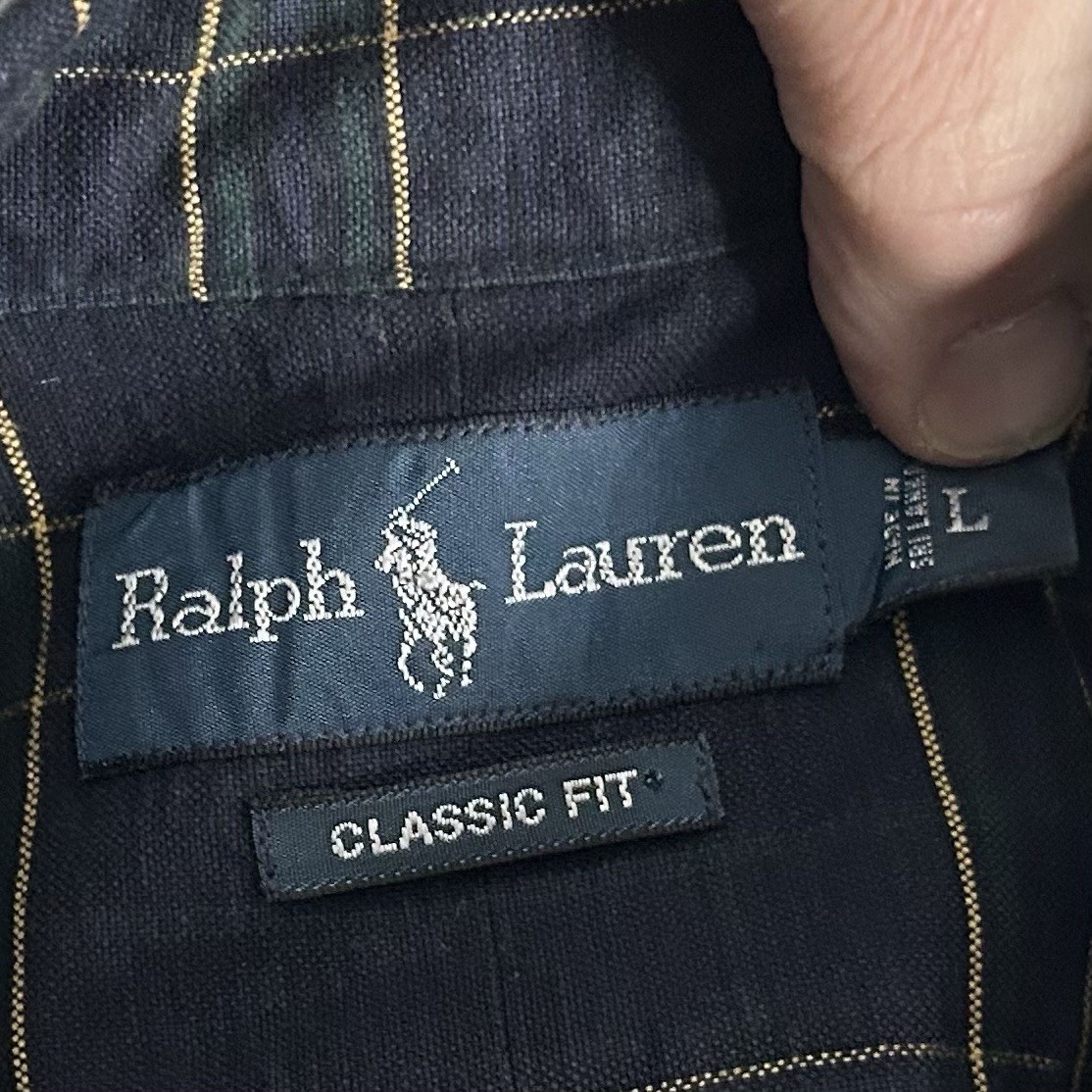 как выглядит Polo Ralph Lauren Large Classic Fit Vintage Oxford Shirt Blue Green Yellow Plaid фото