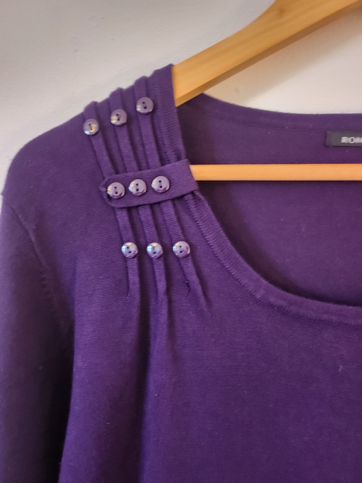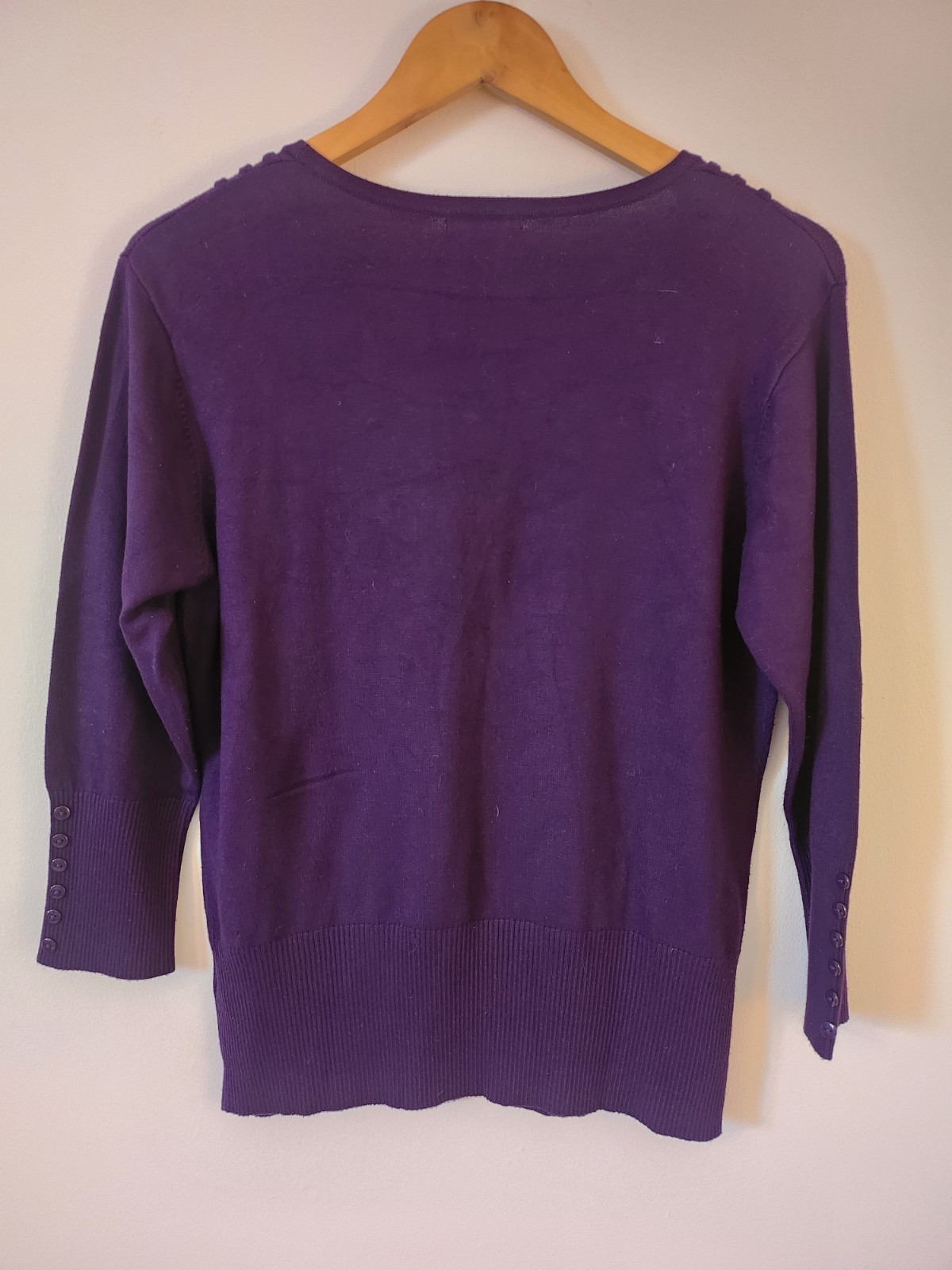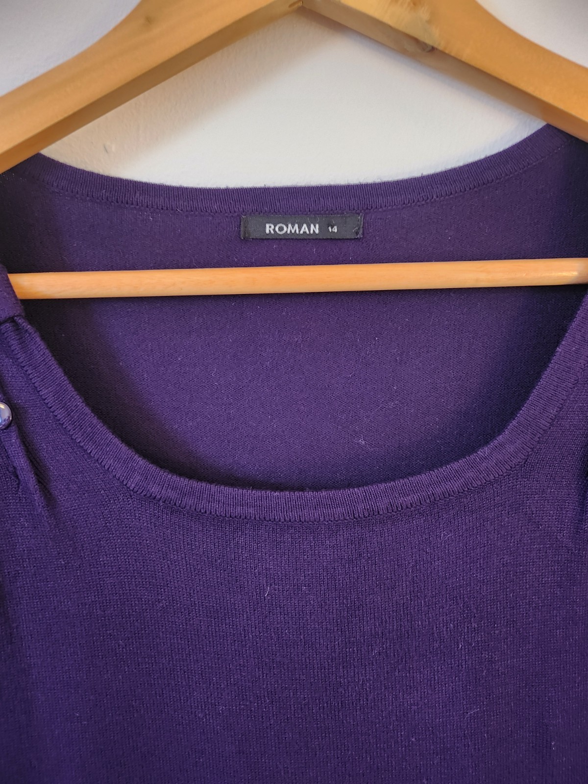 как выглядит Roman Purple 3/4 Sleeve Purple Jumper - Ladies Size 14 - Button Accents- Smart фото