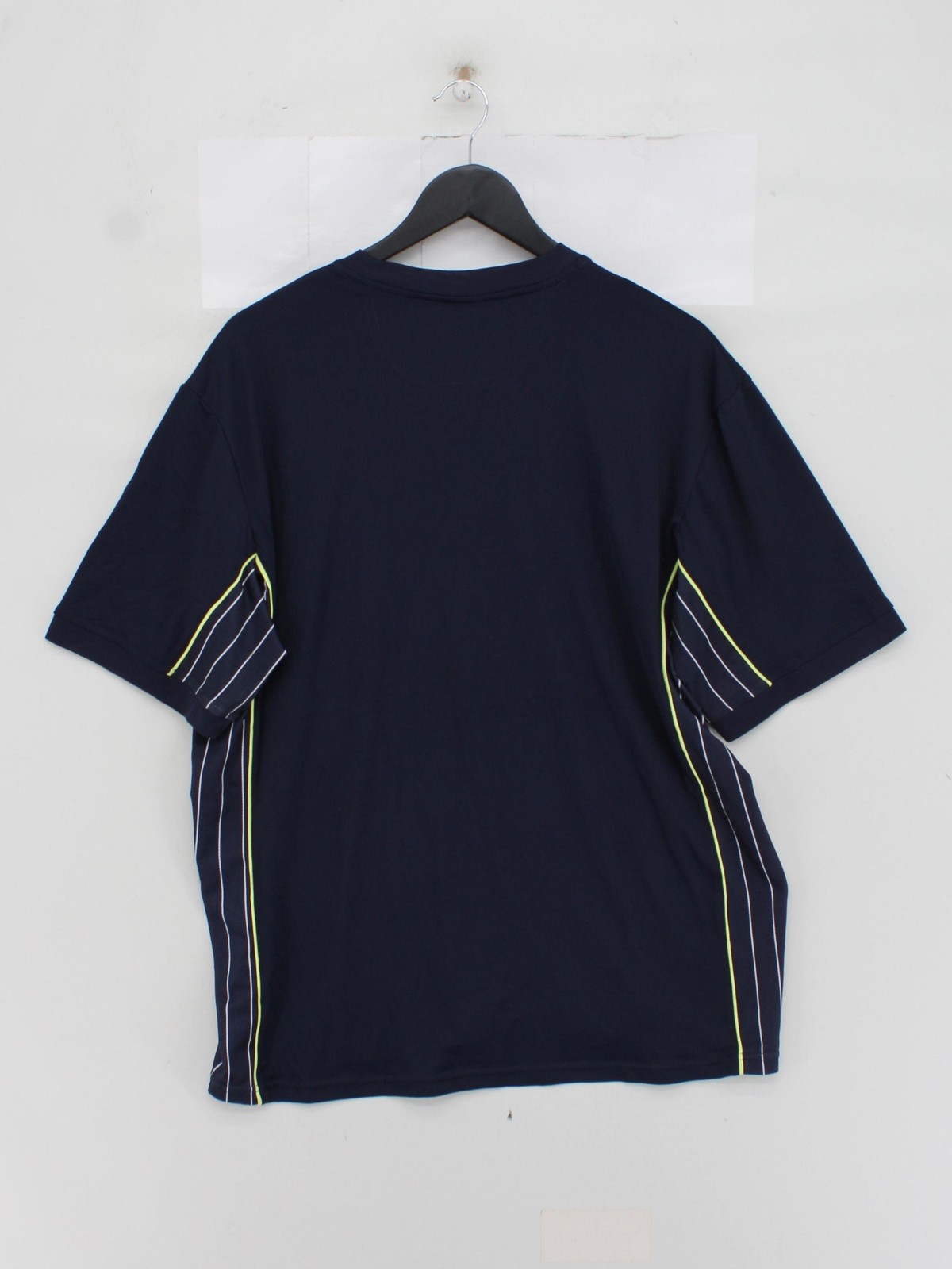 Fila Men's T-Shirt L Blue Striped Polyester with Spandex Round Neck Basic