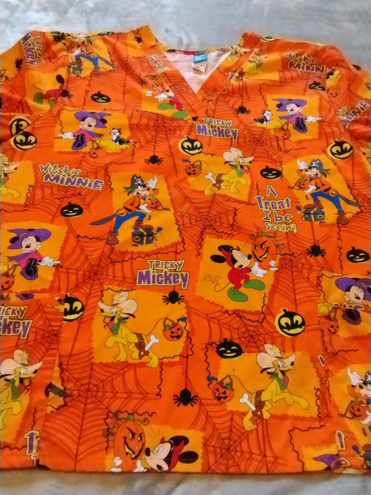 Disney Halloween Scrub Top Tricky Mickey Mouse Shirt Orange Adult 3XL