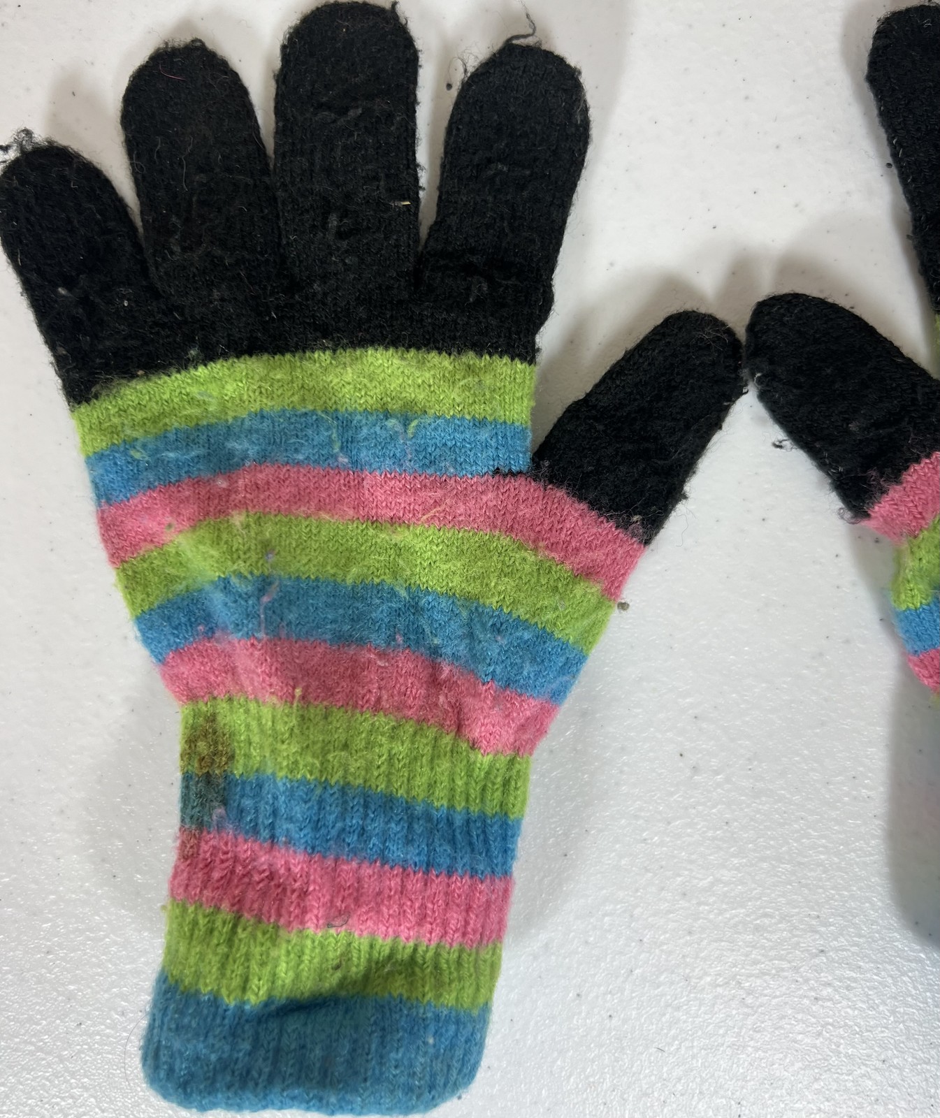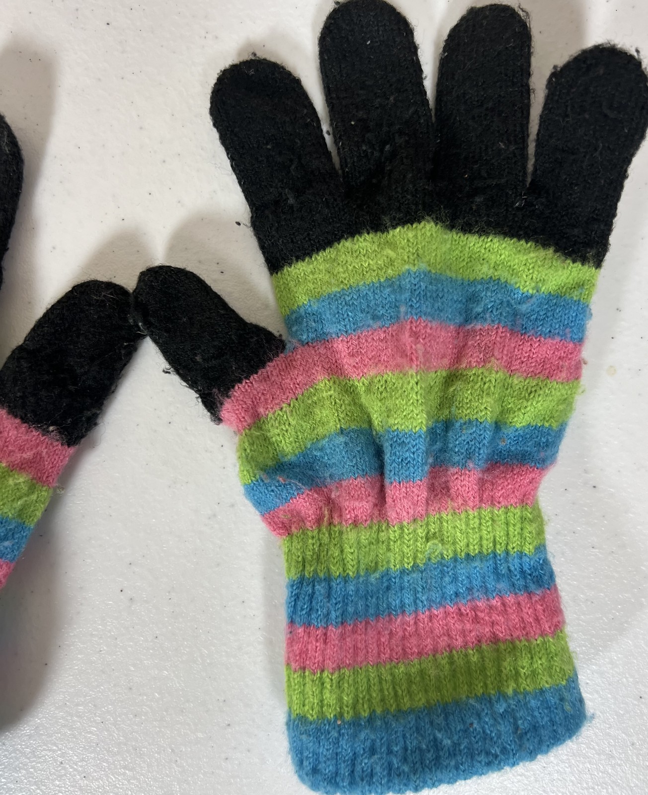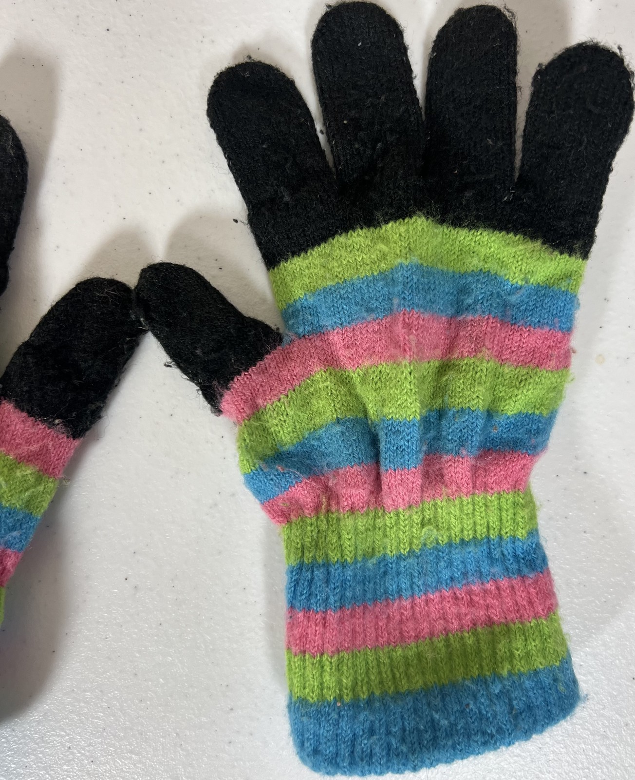 как выглядит Girls Aquarius Ltd Striped Knit Gloves One Size Winter Warm Colorful Pink Green фото