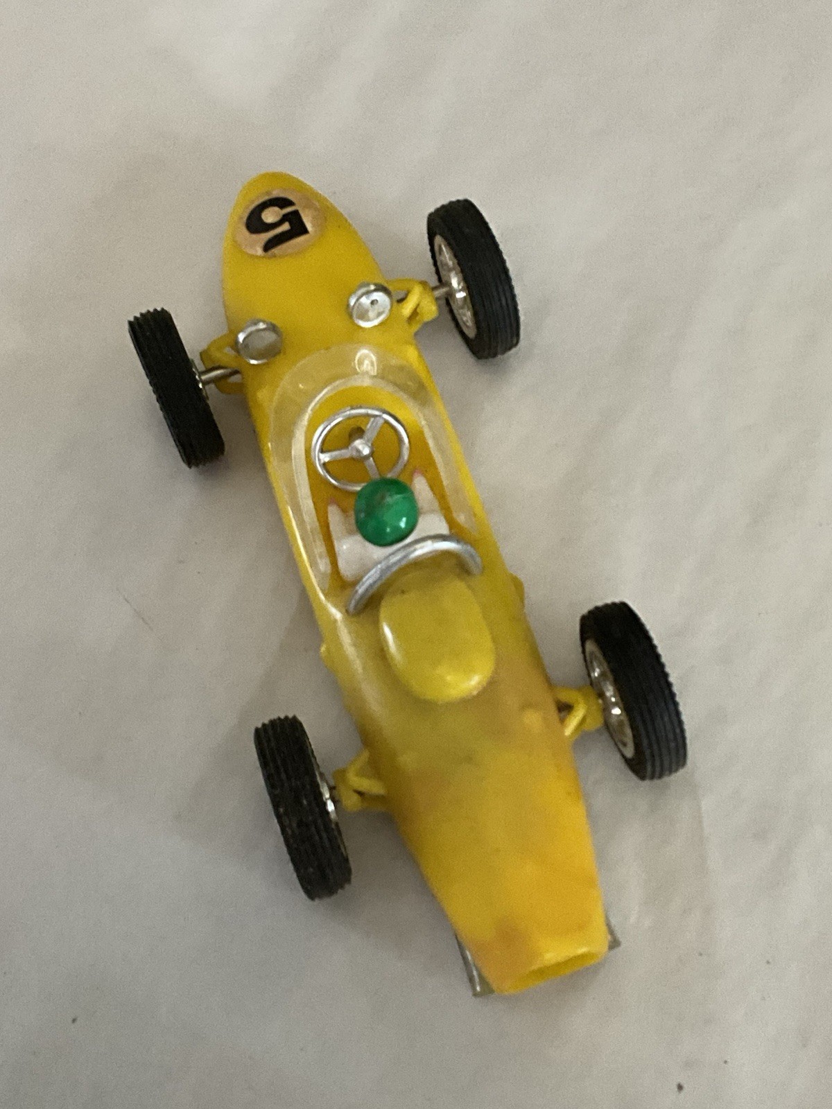 как выглядит Vintage Zee Toys Friction Formula Race Car Yellow 5 Plastic - Not Working фото