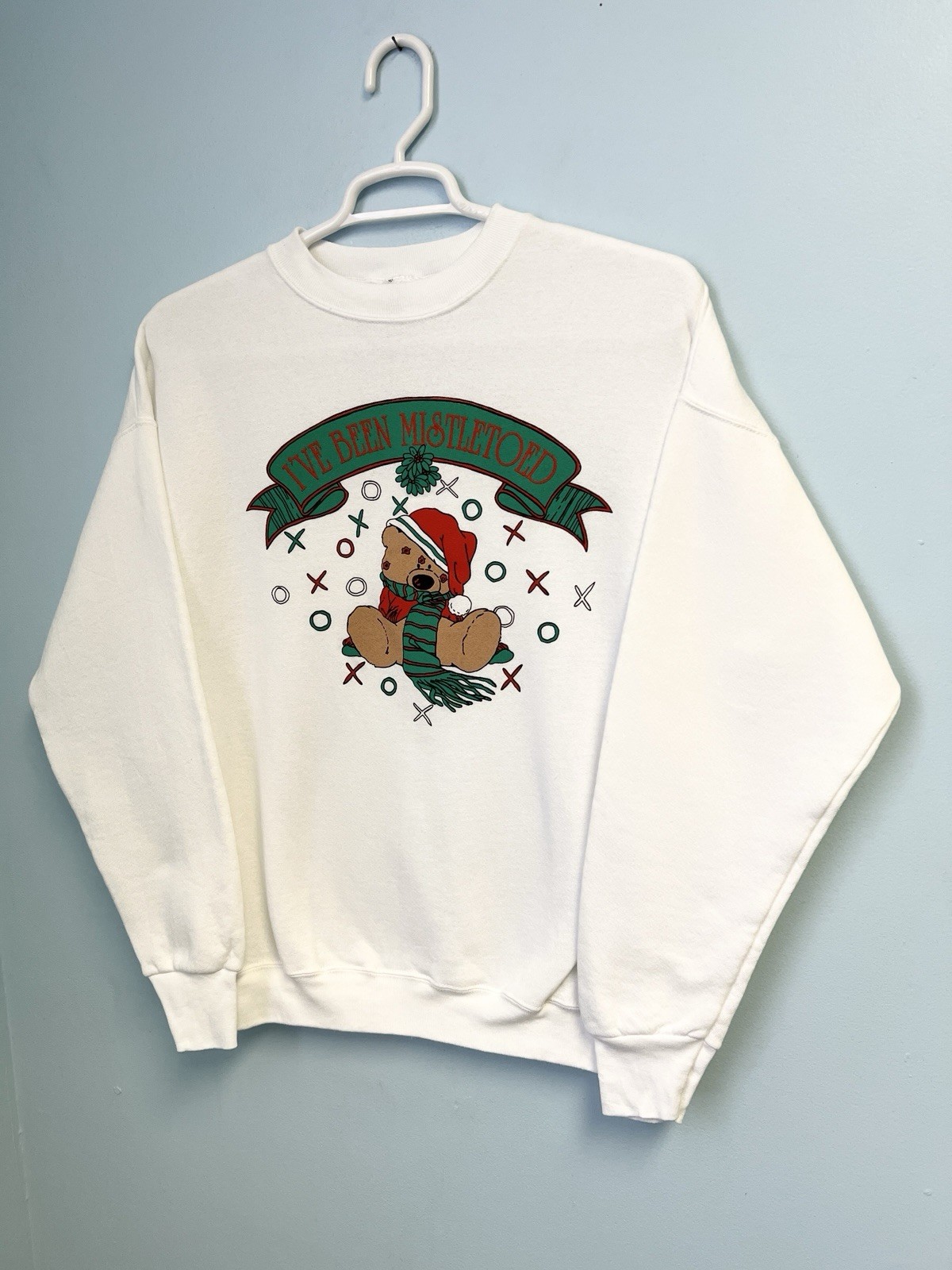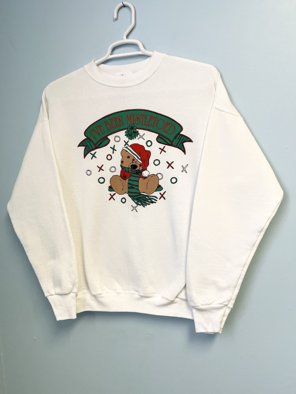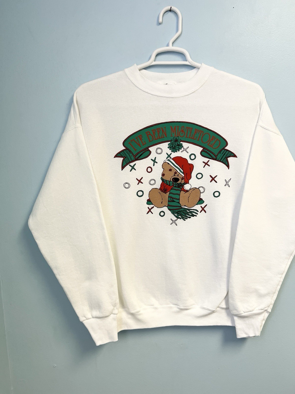Vintage 90s Christmas Sweatshirt I ve Been Mistletoed Teddy Bear