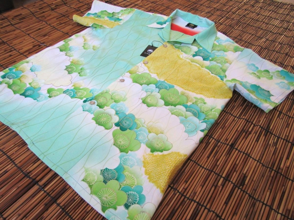 Vintage Kimono Remake Aloha Shirt L Silk Handmade Japan Haori Fabric 793 NEW