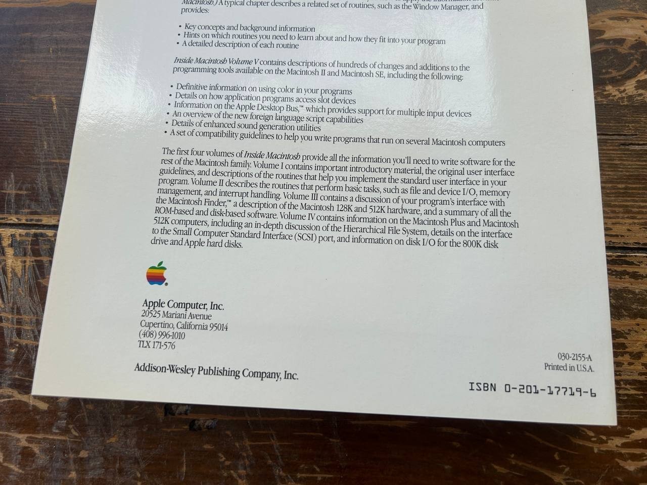Vintage Apple Inside Macintosh Volume V 1988 Hardcover Developer Book