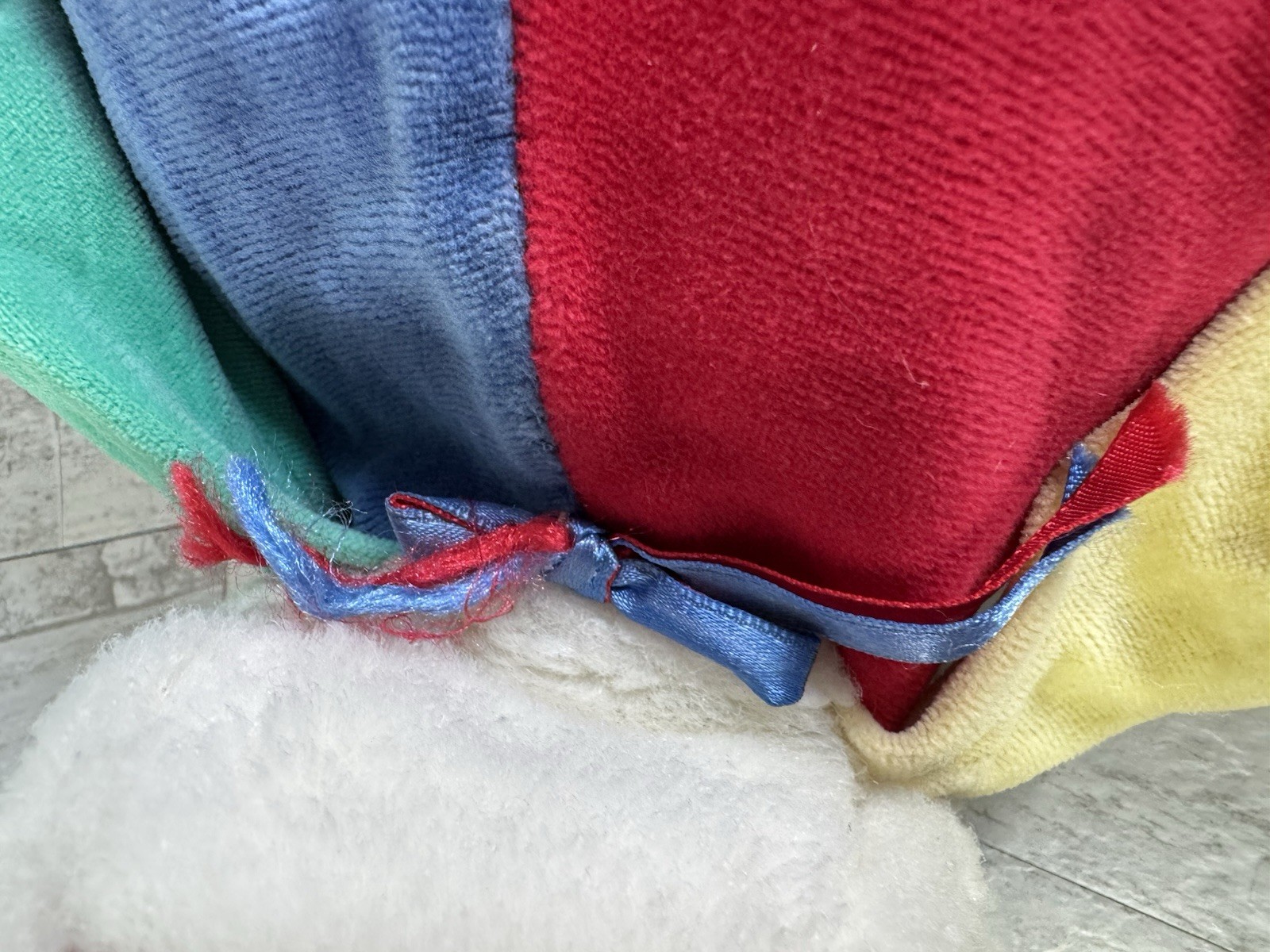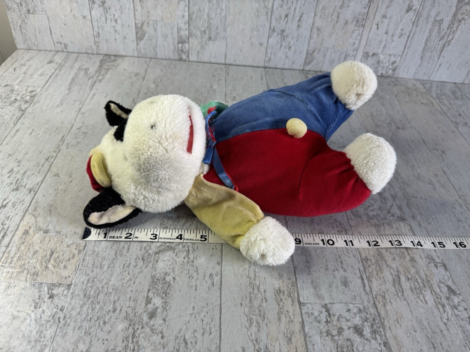 как выглядит Vintage Primary Colors Cow Plush Stuffed Animal Eden Red Blue Yellow Hat Green фото