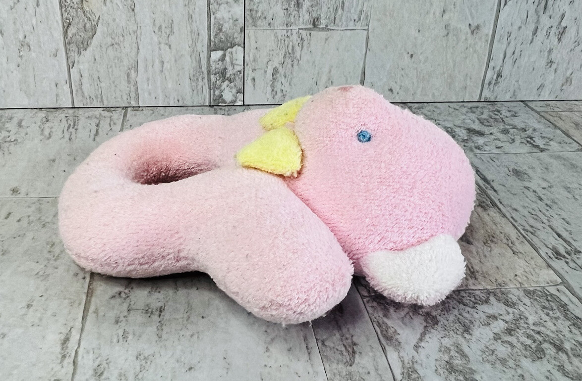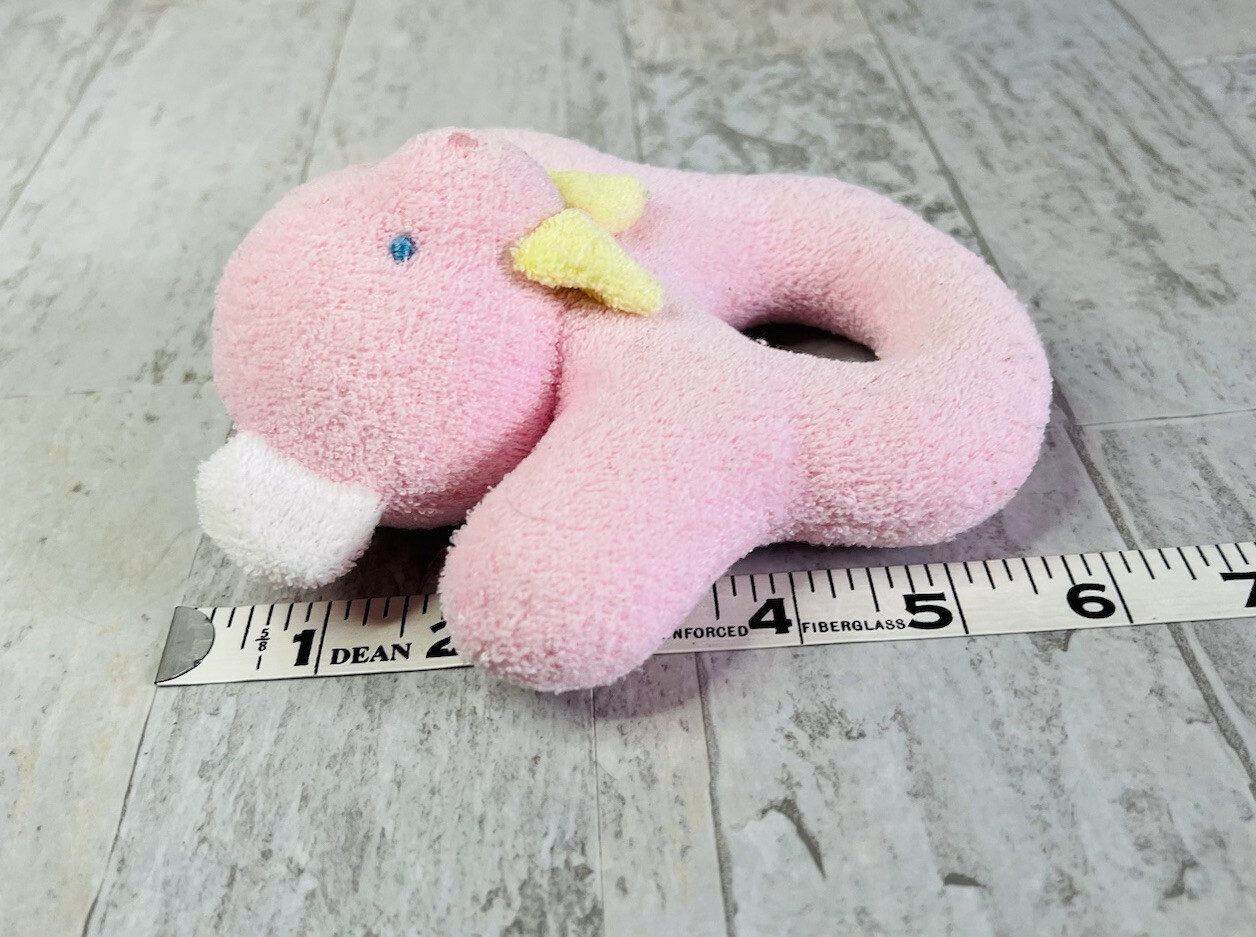Eden Pink Teddy Bear Terrycloth Hand Rattle Yellow Bow