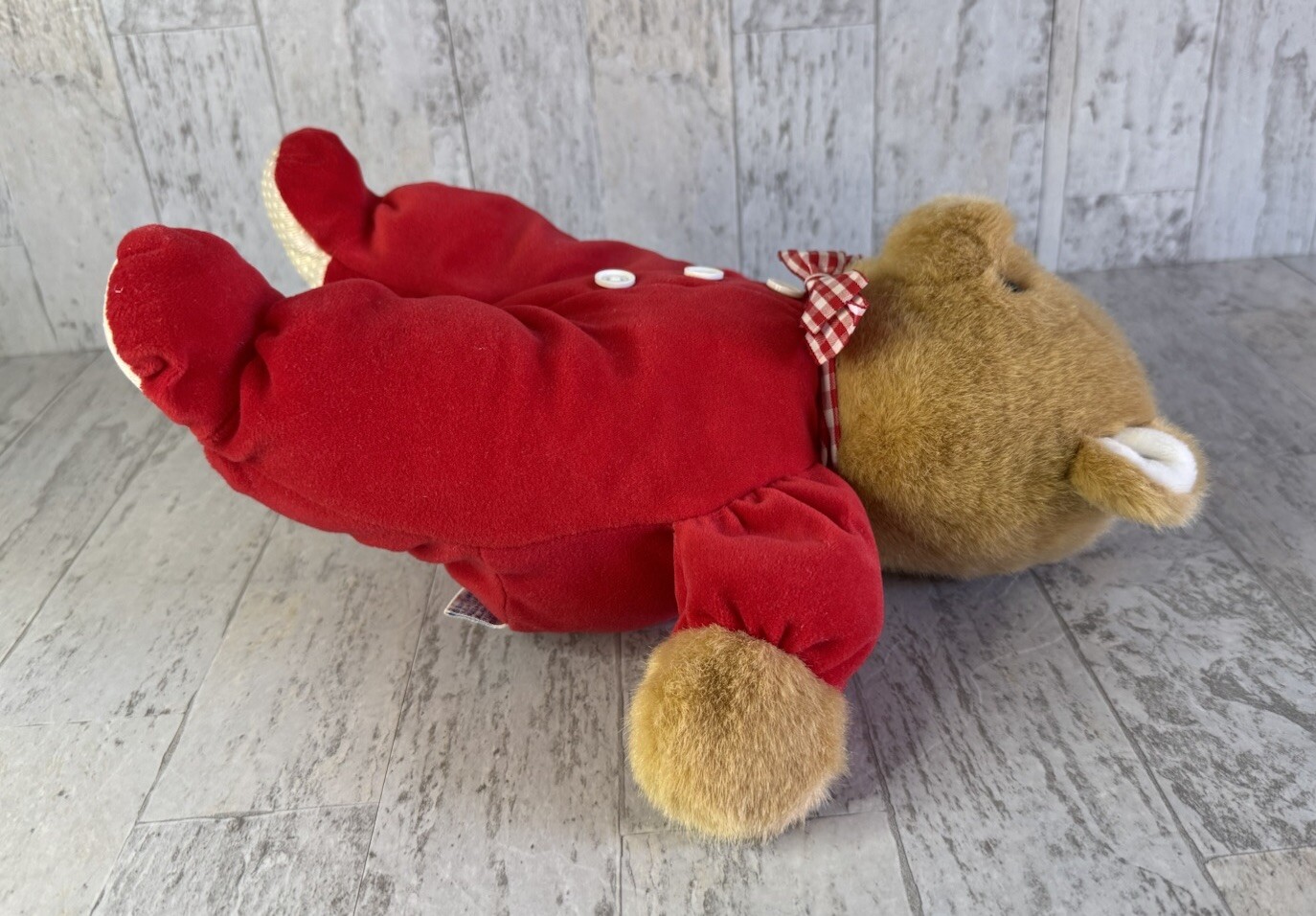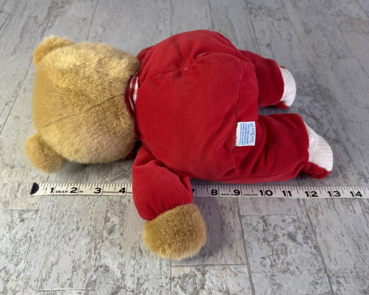 как выглядит Vintage Eden Teddy Bear Plush Red Velour Bow Toy Stuffed Animal фото