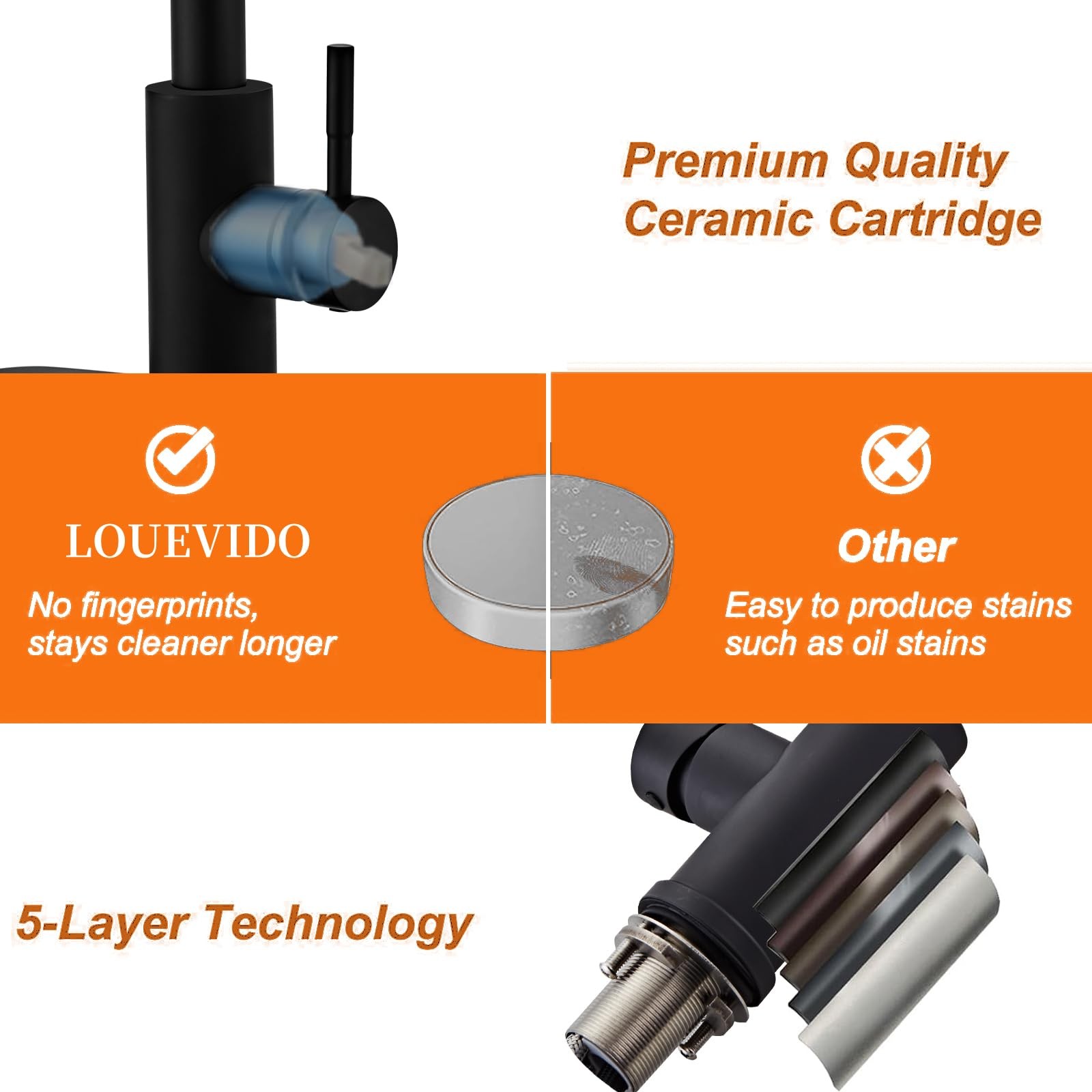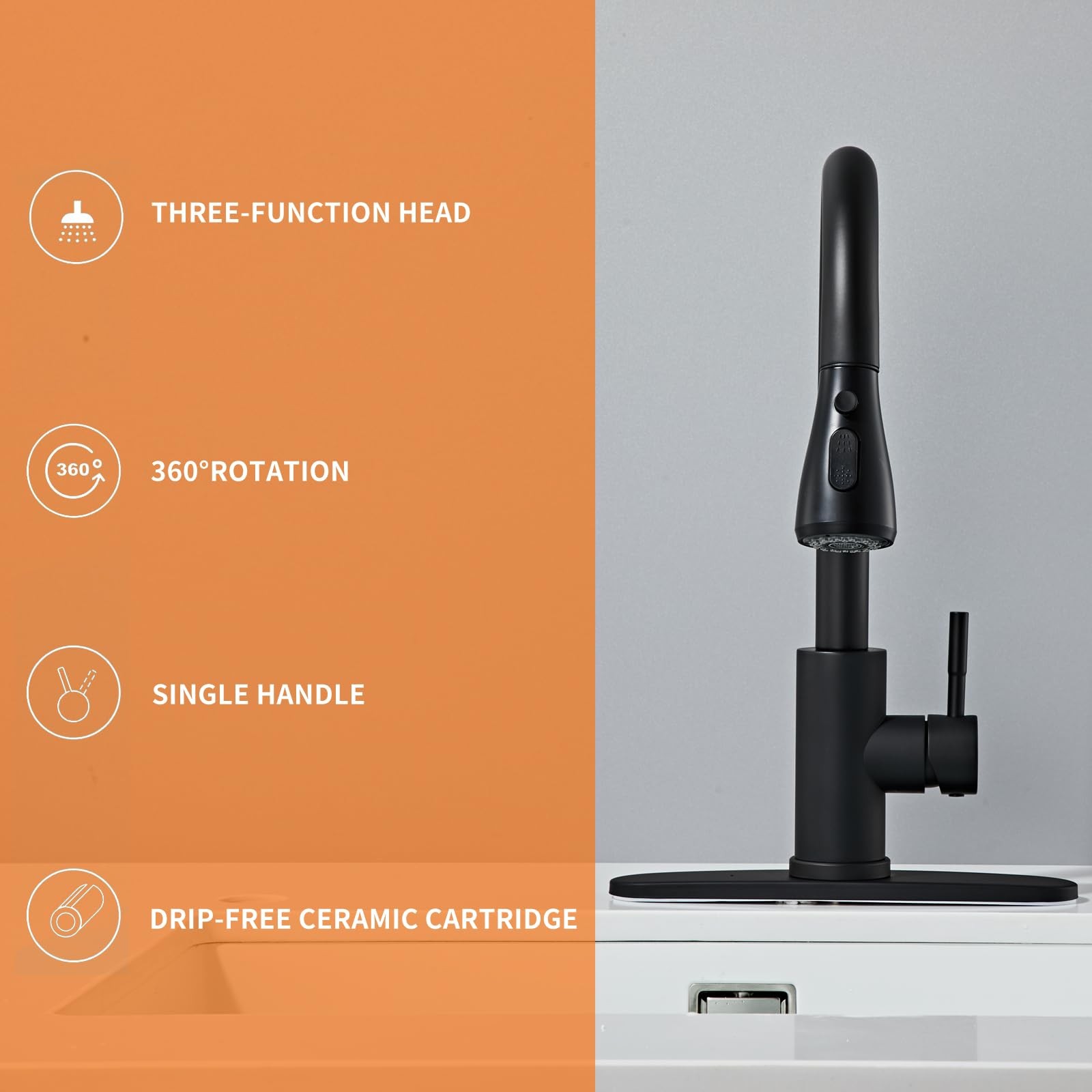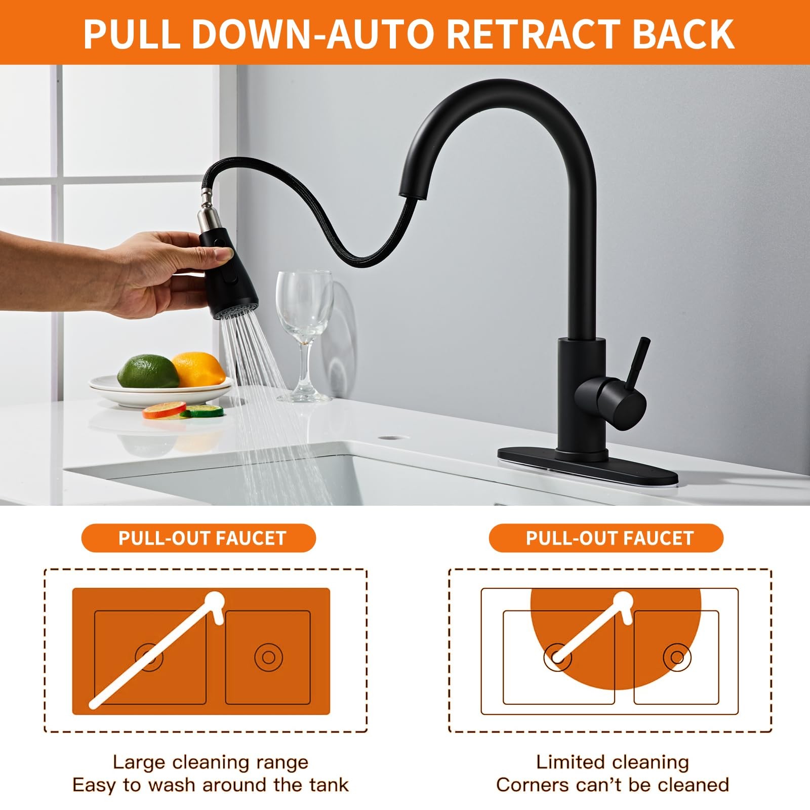 Black Kitchen Faucet with Pull Down Sprayer, Modern Stainless Steel Sink Faucet