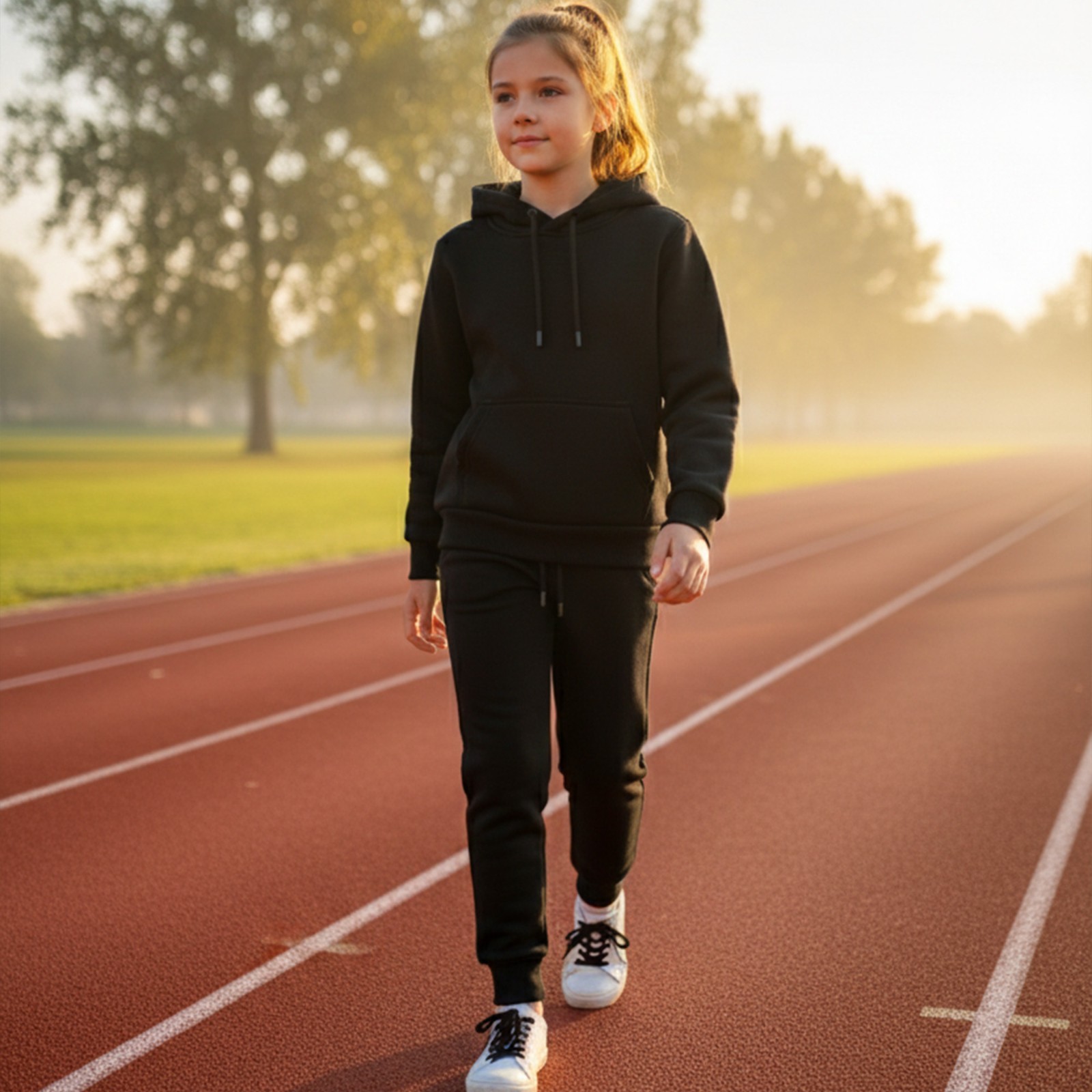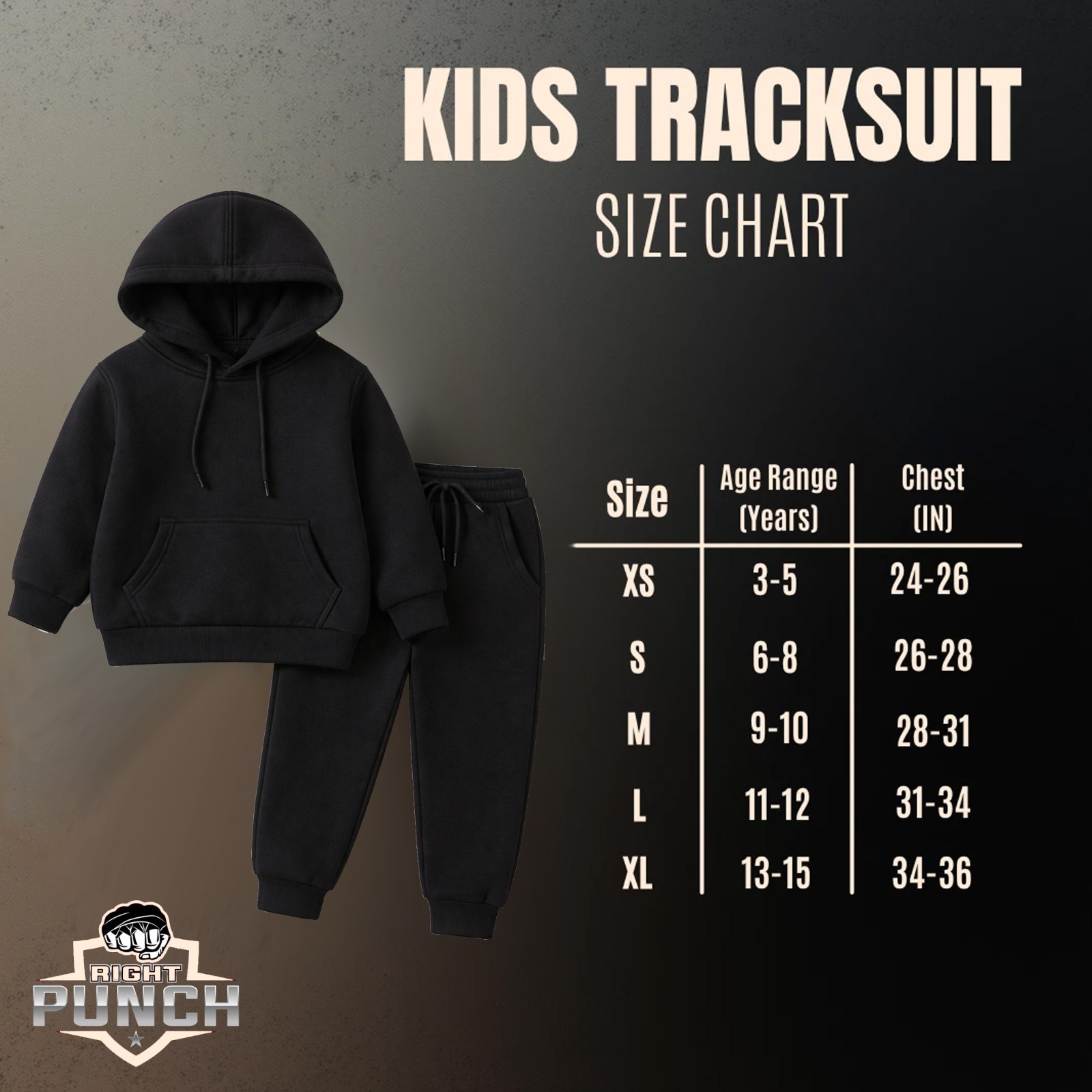 Kids Black Fleece Tracksuit Hoodie Joggers Set Kangaroo Pocket Pullover unisex