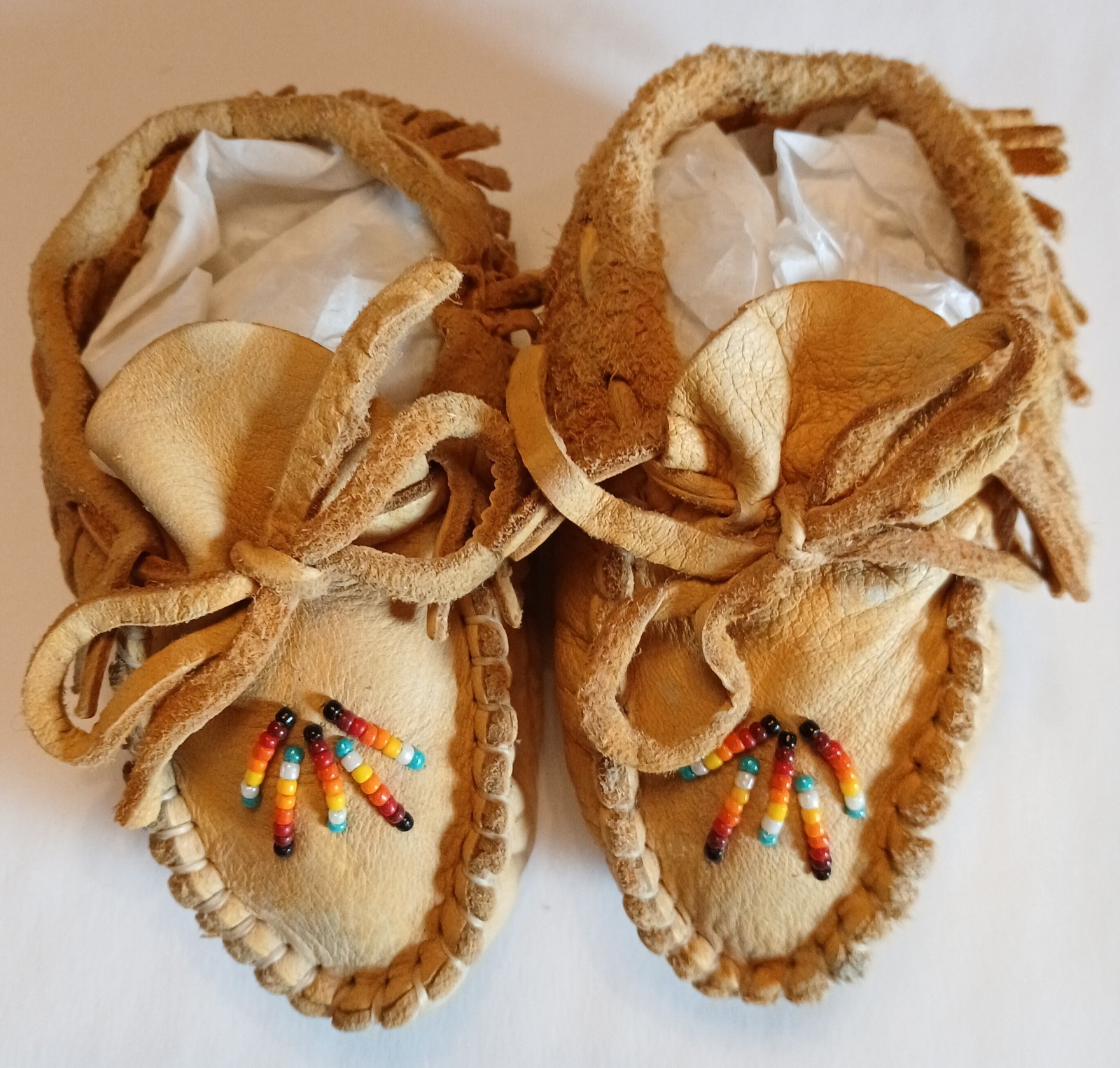 • Vintage New Handmade Buckskin Beaded Fringed Baby Moccasins