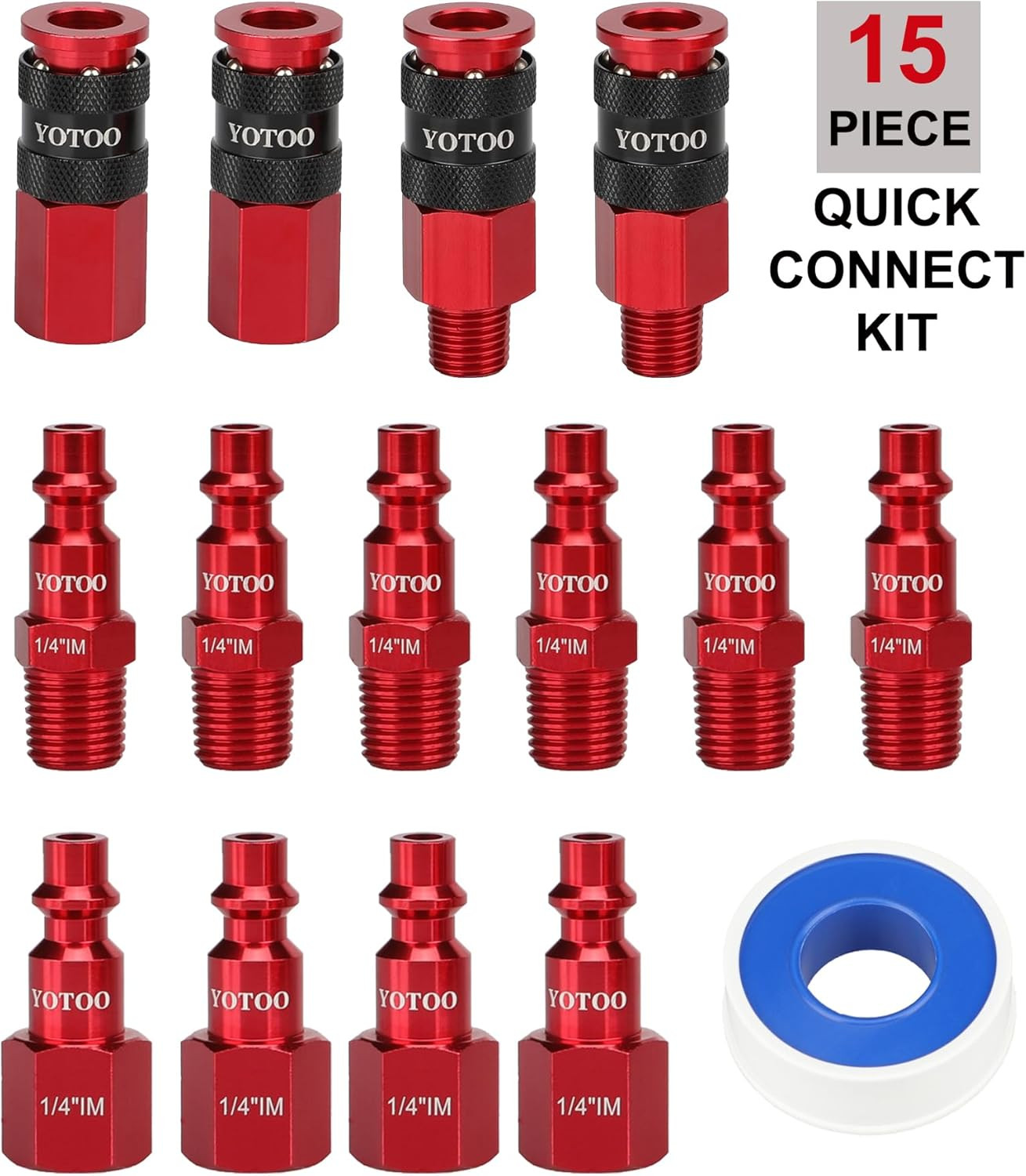 15 Pieces Universal Air Coupler and Plug Kit, Quick Connect Air Hose Fittings, H