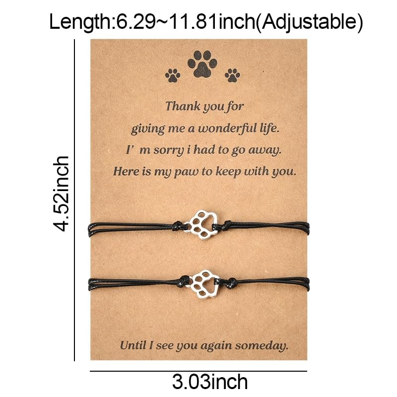 Memorial Bracelet for Pet Loss - Sympathy Paw Print Friendship Small, black