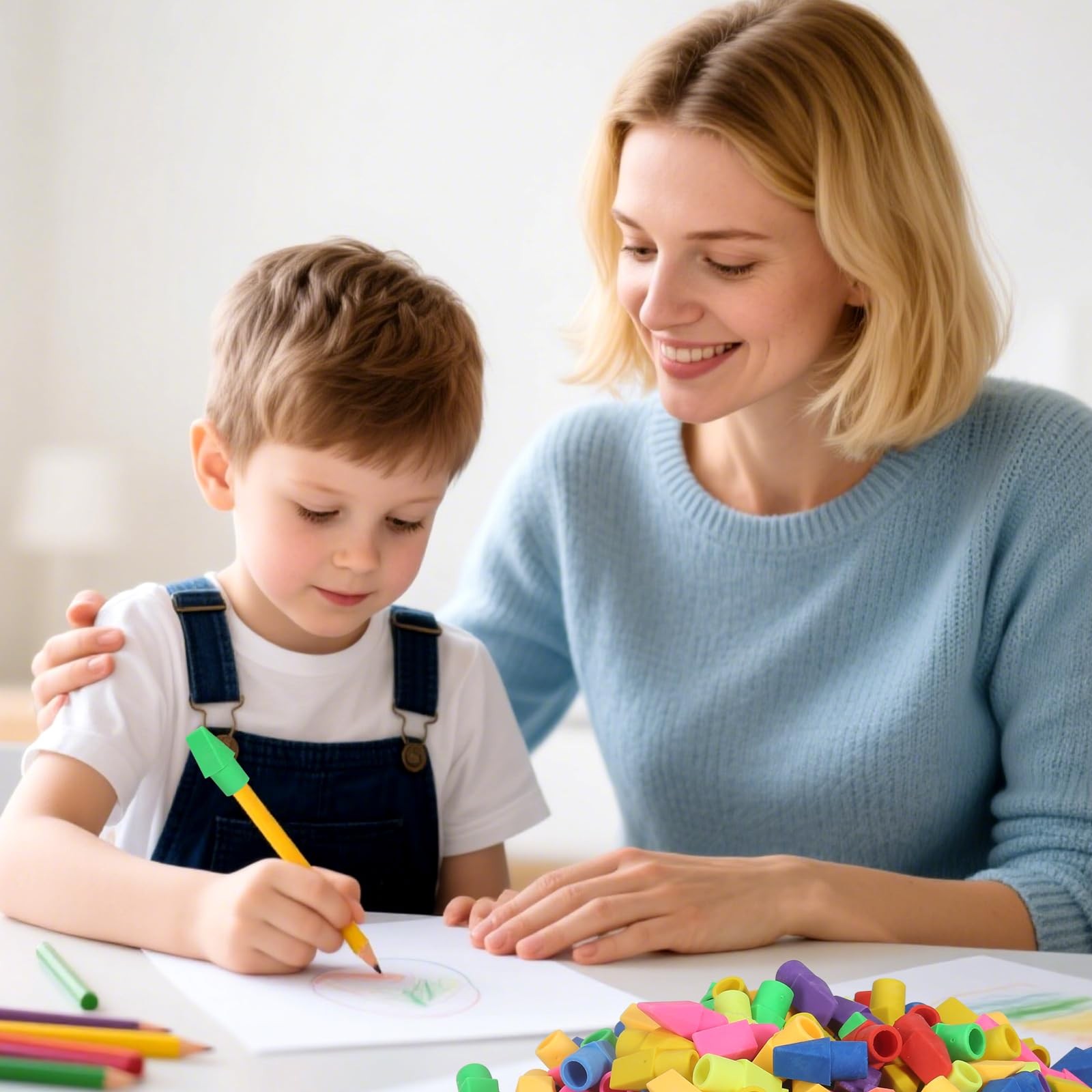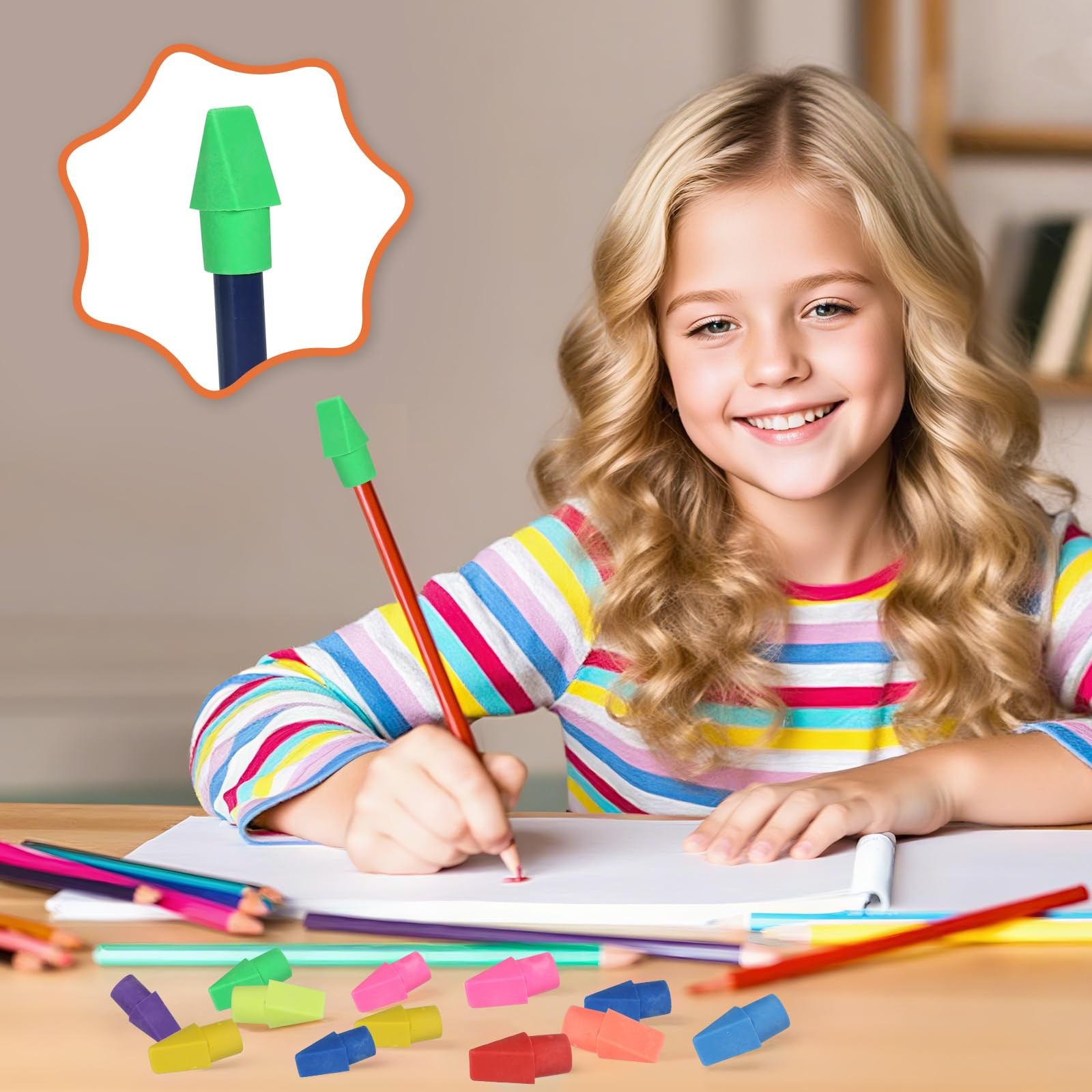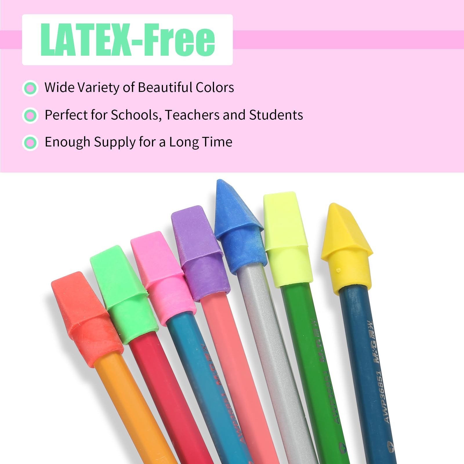 как выглядит 300 Pack Pencil Top Erasers Bulk 10 Colors and Cap for Multi-color фото