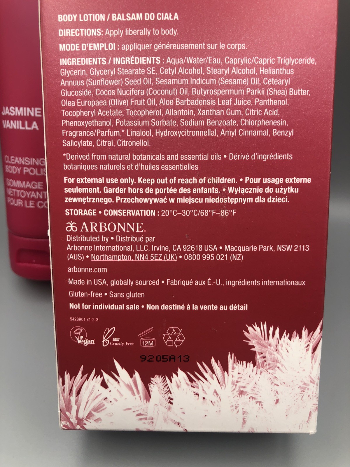 как выглядит Arbonne JASMINE VANILLA Gift Set Cleansing Body Polish Body Lotion VEGAN NIB фото