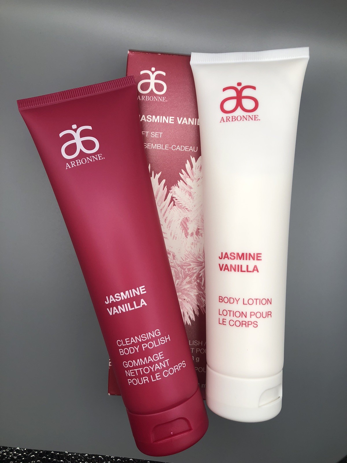 Arbonne JASMINE VANILLA Gift Set Cleansing Body Polish Body Lotion VEGAN NIB