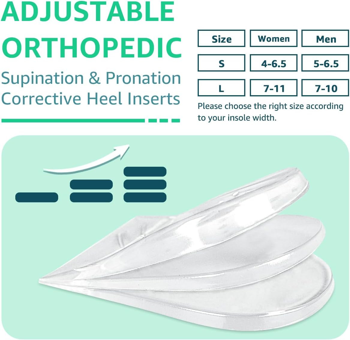 3 Layers Adjustable Heel Wedge Inserts for Supination Pronation Correction, Ad