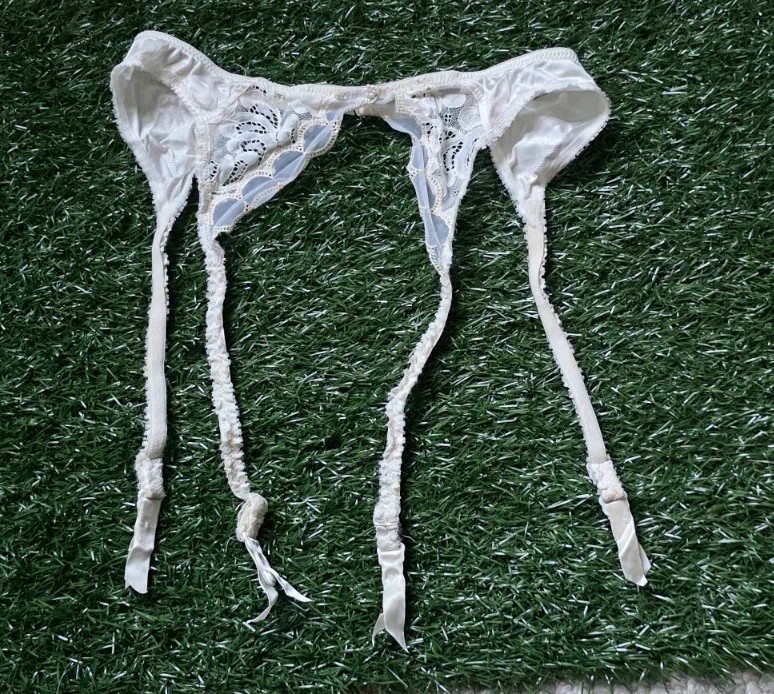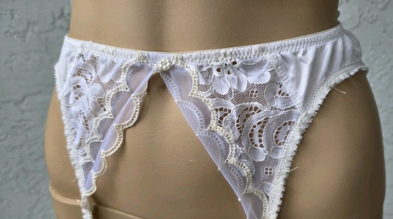 как выглядит Vintage 80s Christian Dior Garter Lace Belt Adjustable Ivory White Womens Medium фото