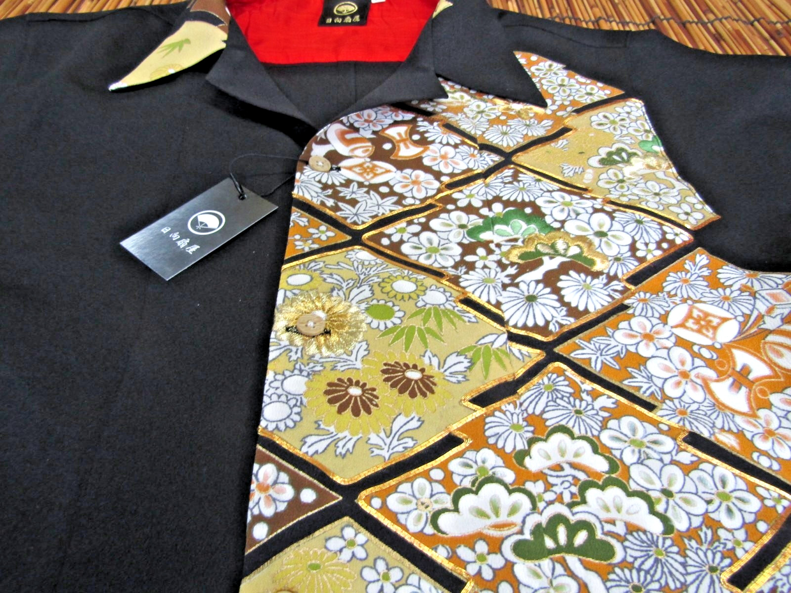 Vintage Kimono Remake Aloha Shirt M Silk Handmade Japan Haori Fabric 762 NEW