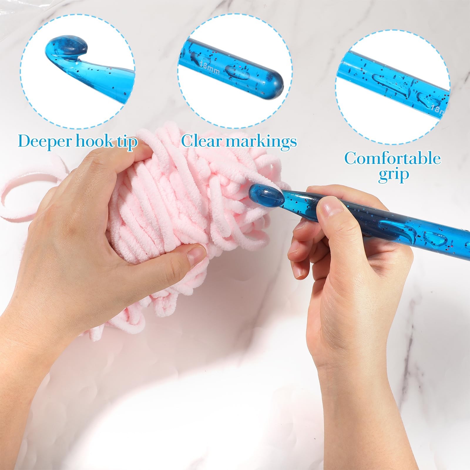 LIQWEI 3Pcs Crochet Hooks, Large Hook for 12mm, 15mm, 18mm, Red
