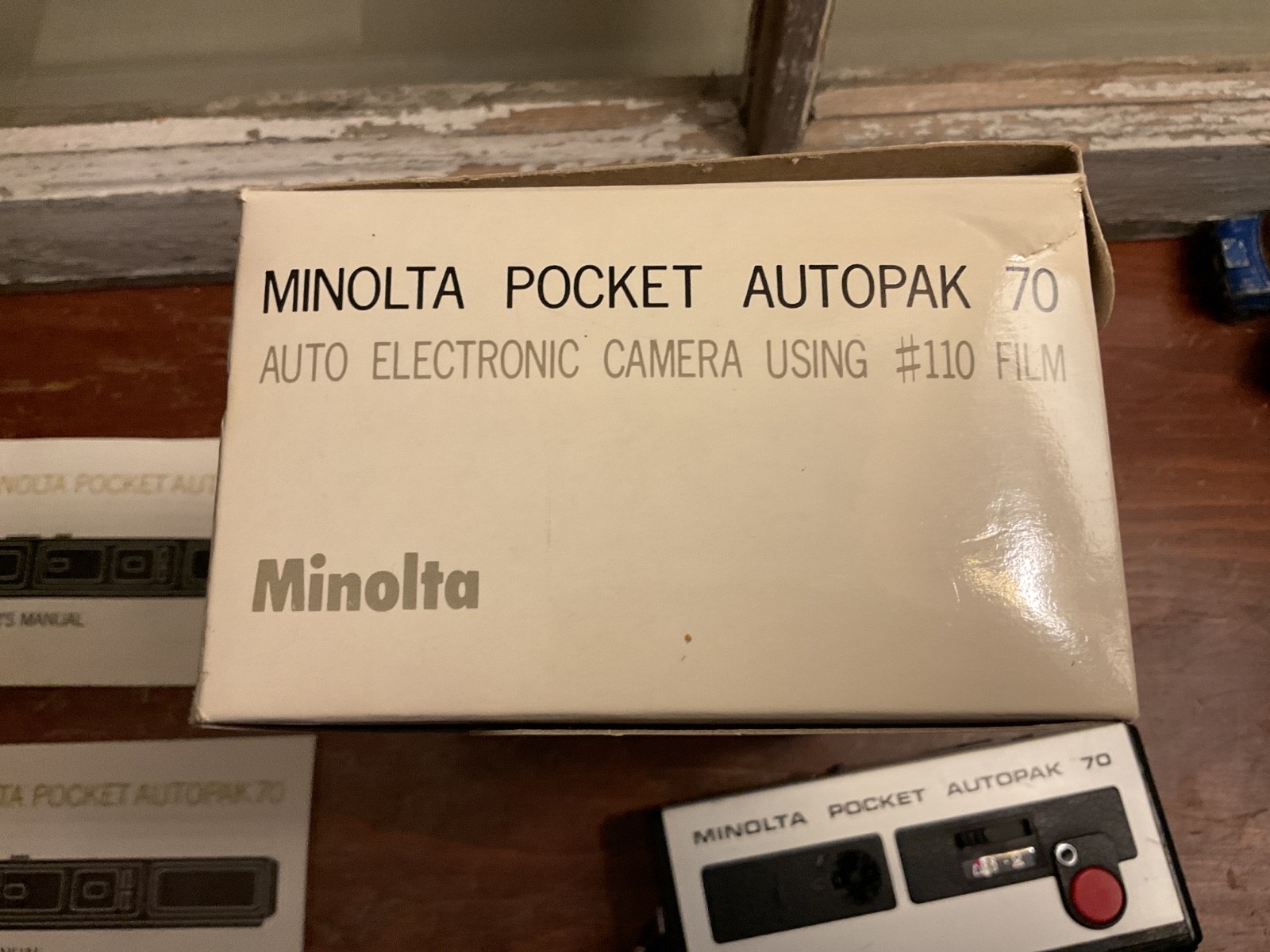 Vintage Minolta Pocket Autopak 70 110 Film Camera With Box/Manual - No Battery