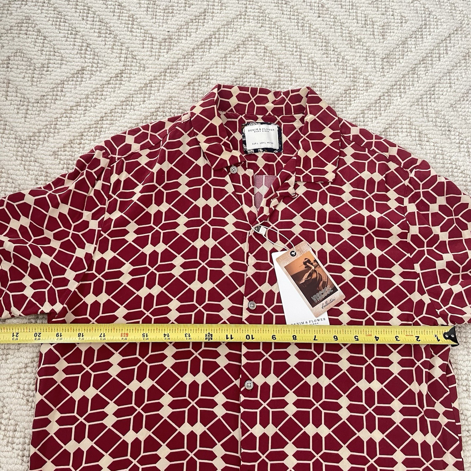 DENIM FLOWER RICKY SINGH Mens L Geometric Print Button Down Shirt