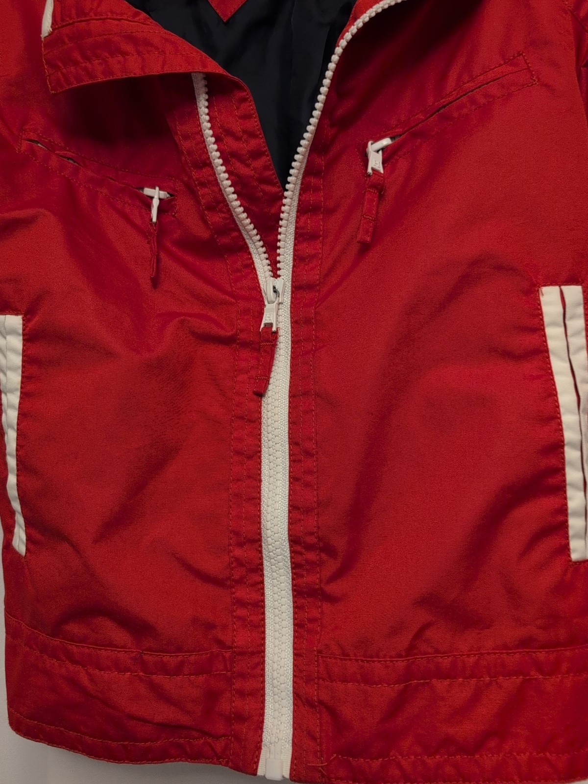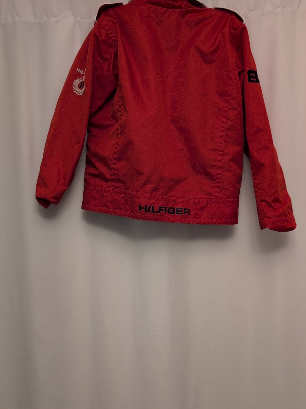 tommy hillfiger size 6 kids red jacket branded sleeves zippers pockets