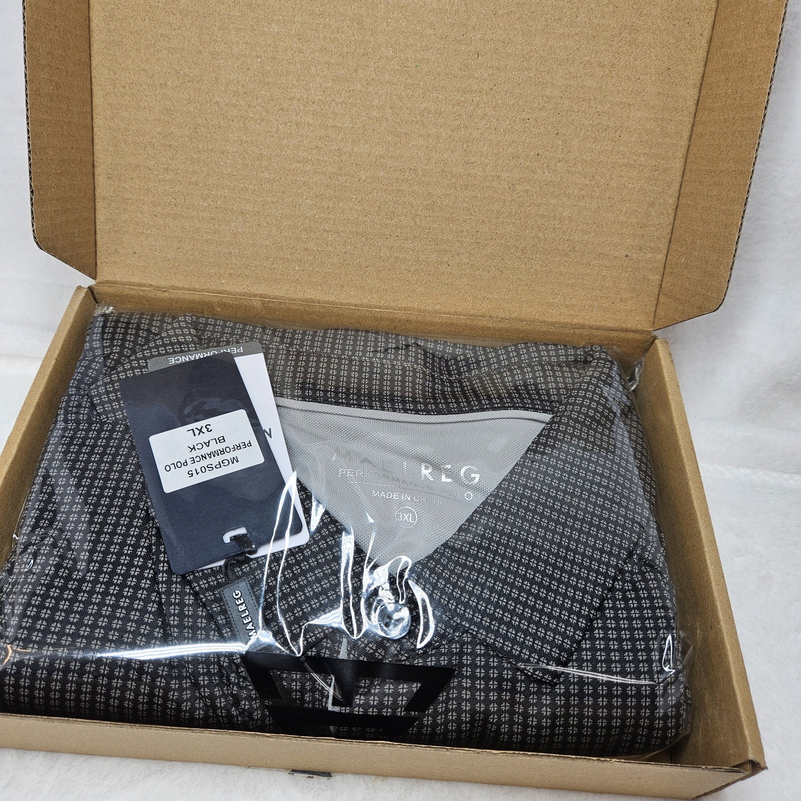 MAELREG Mens Performance Polo Shirt 3XL Black Dry Fit Pocket Golf Jacquard NWT