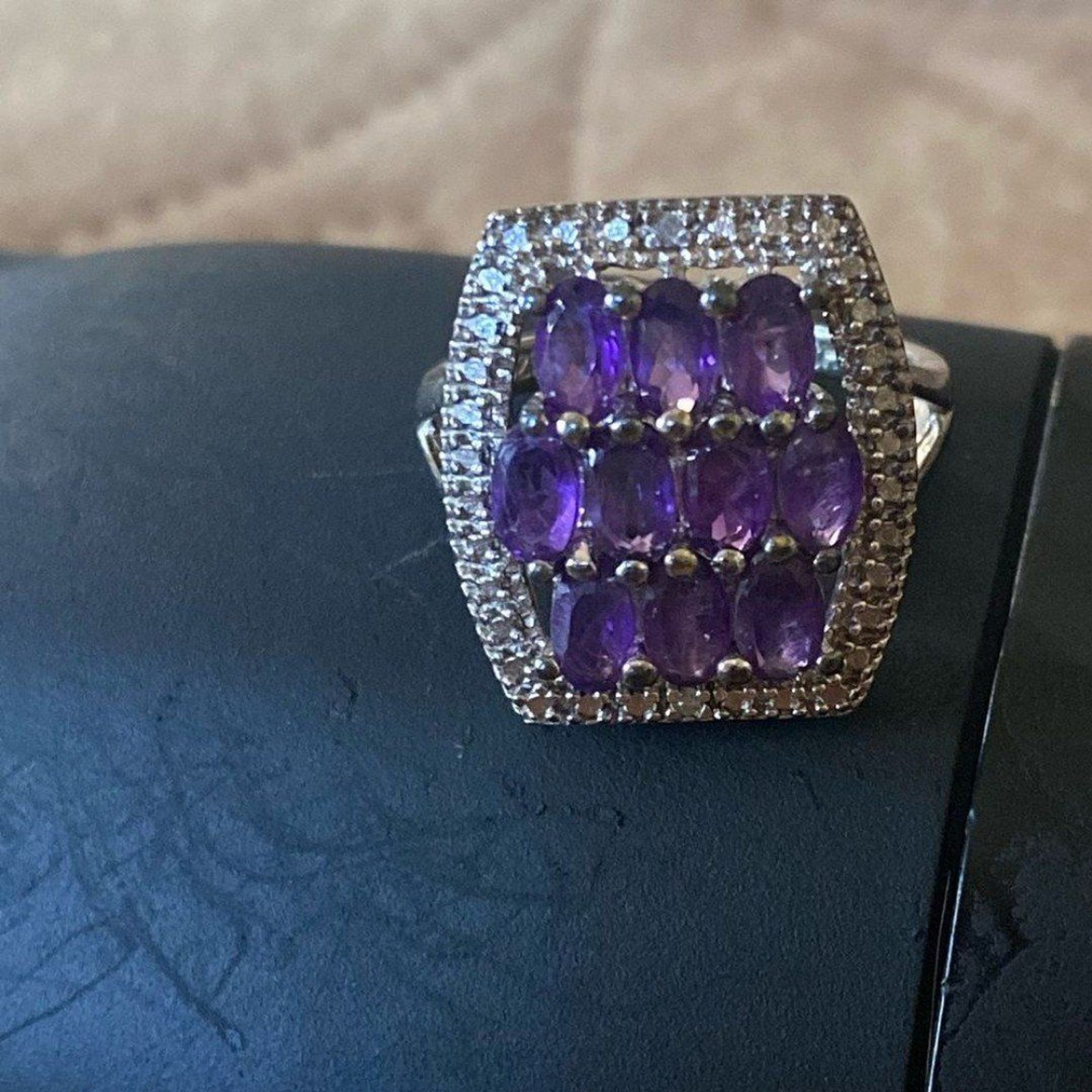 как выглядит 925 Sterling Silver Amethyst Statement Ring Size 7 Purple Gemstone Cocktail Ring фото
