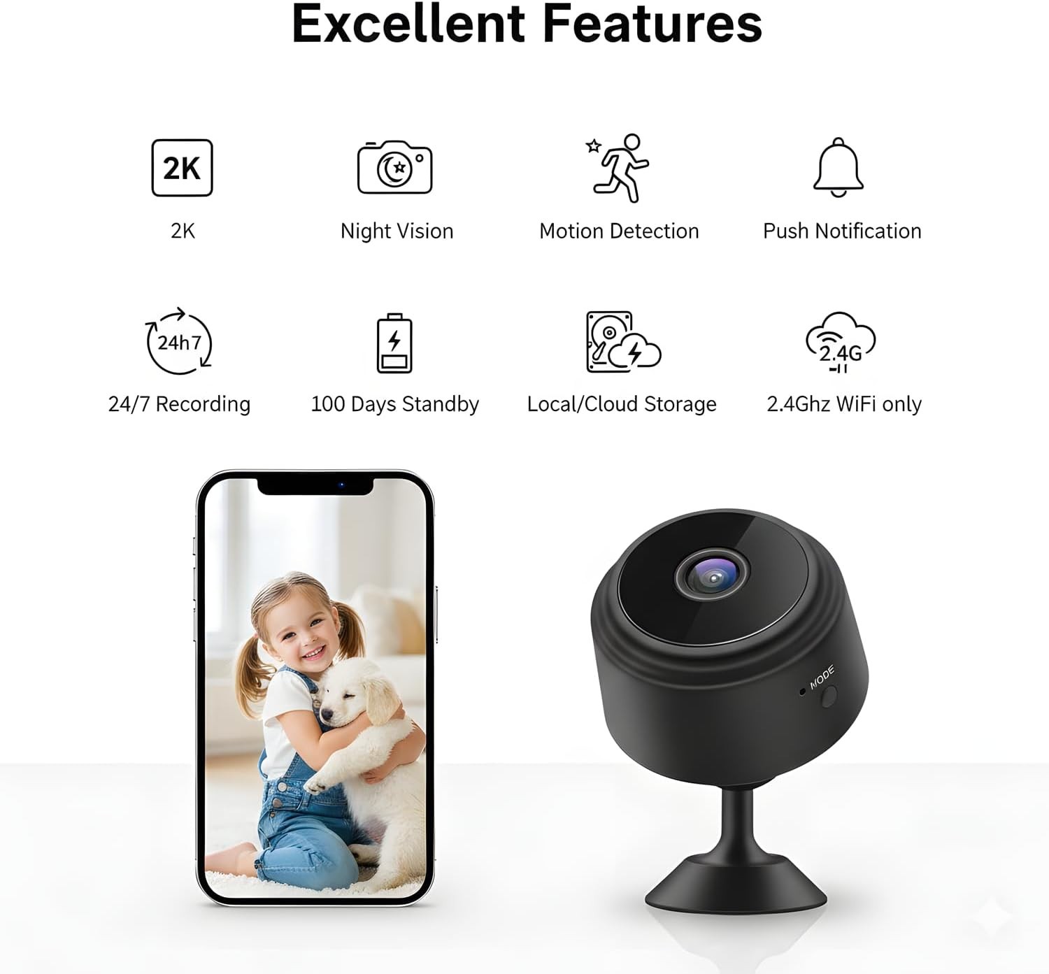 Особенности: Microprocessor Technology, Mini Surveillance Camera, Motion/PIR Activated, Night Vision, Plug in, Two-way voice intercom, Wi-Fi