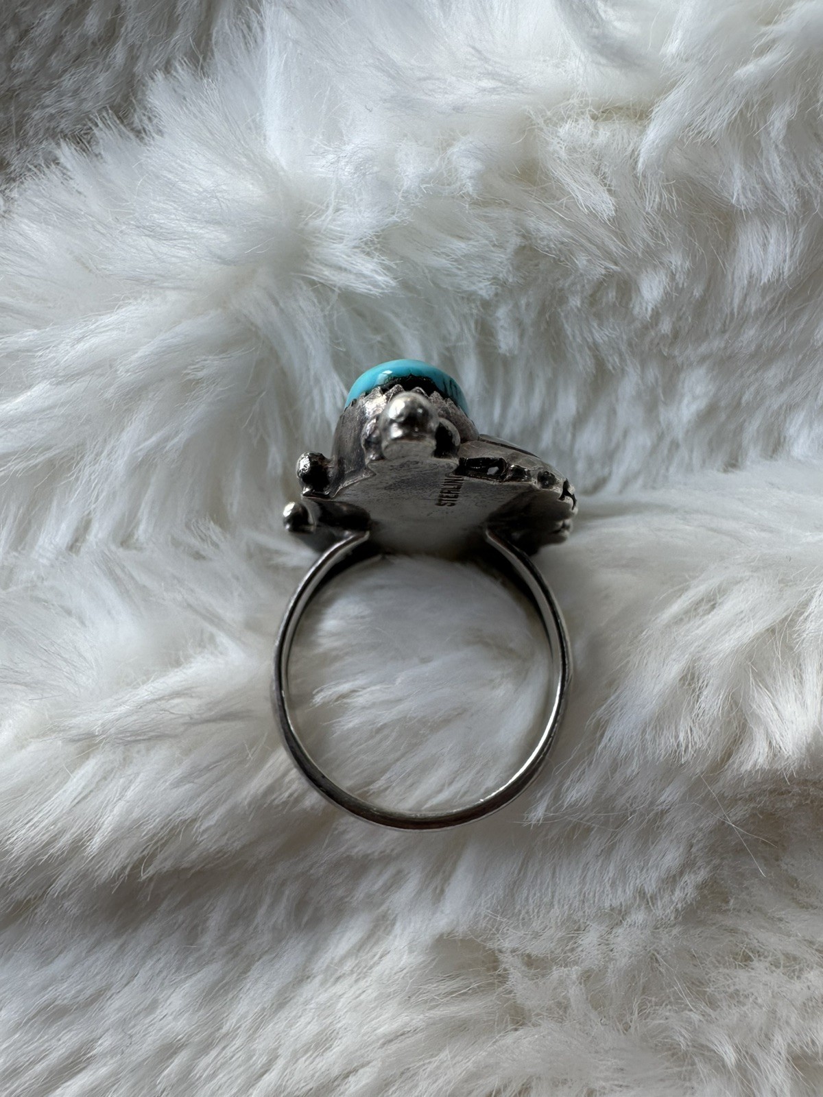 Navajo Sterling Silver Turquoise Ring Signed Sterling 925 Size 7