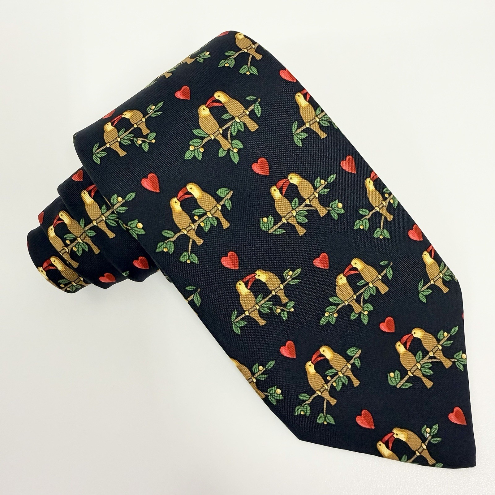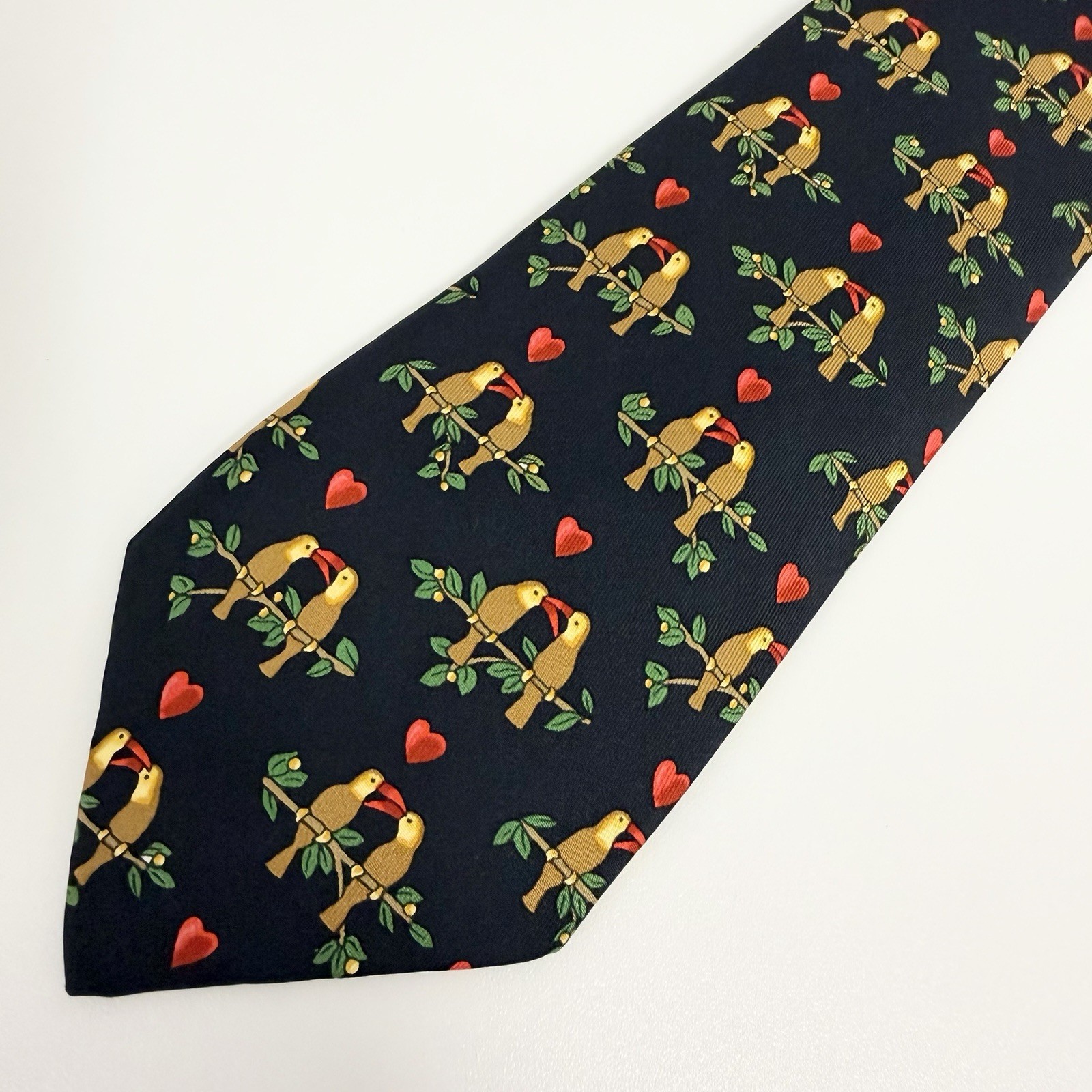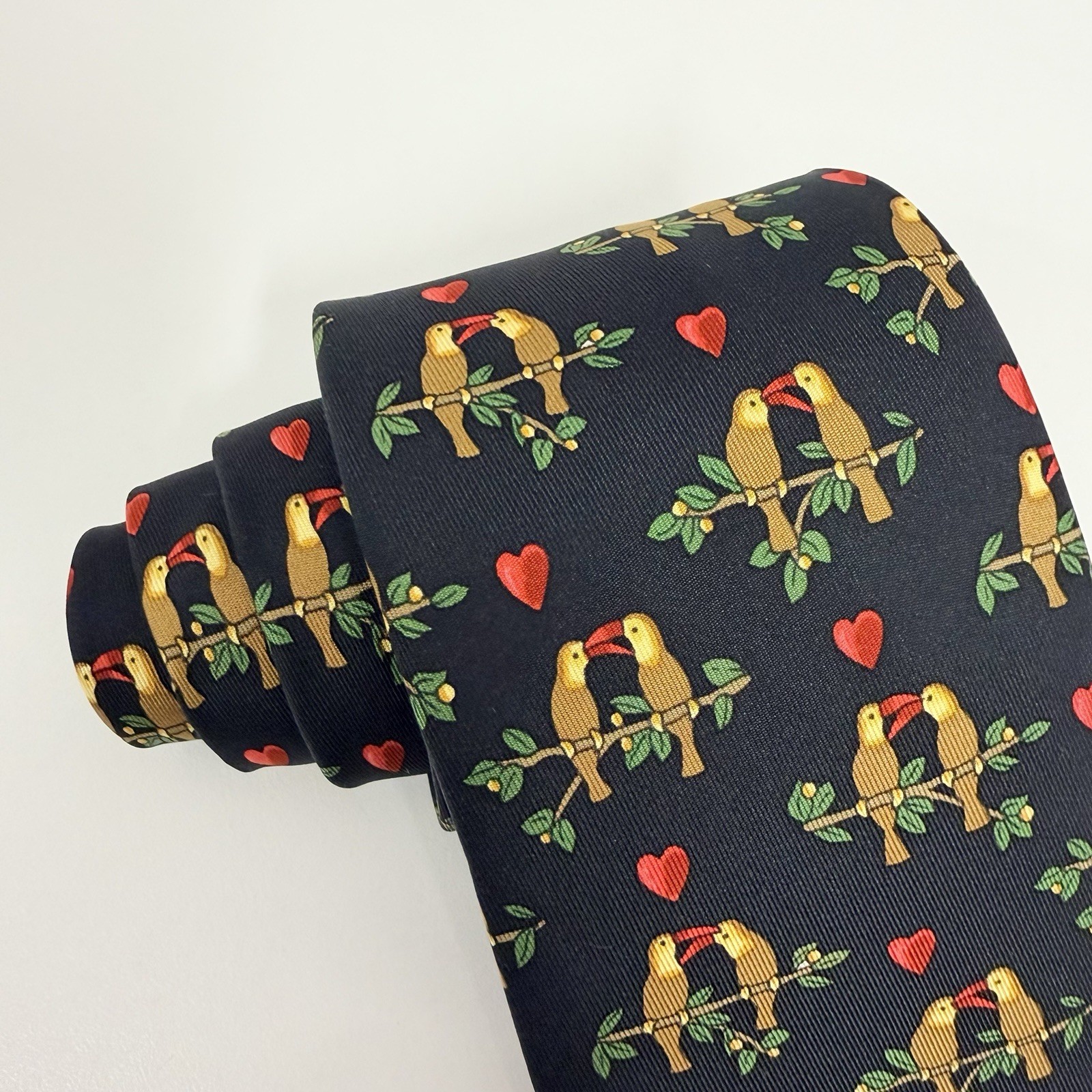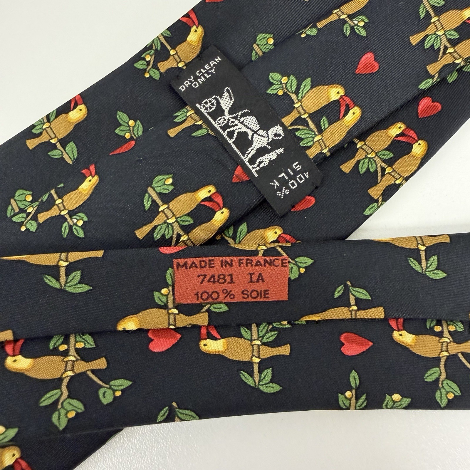 как выглядит Hermes Mens Tie Love Birds Parrots Black Silk 7481 IA 3.25" W x 56" L euc фото
