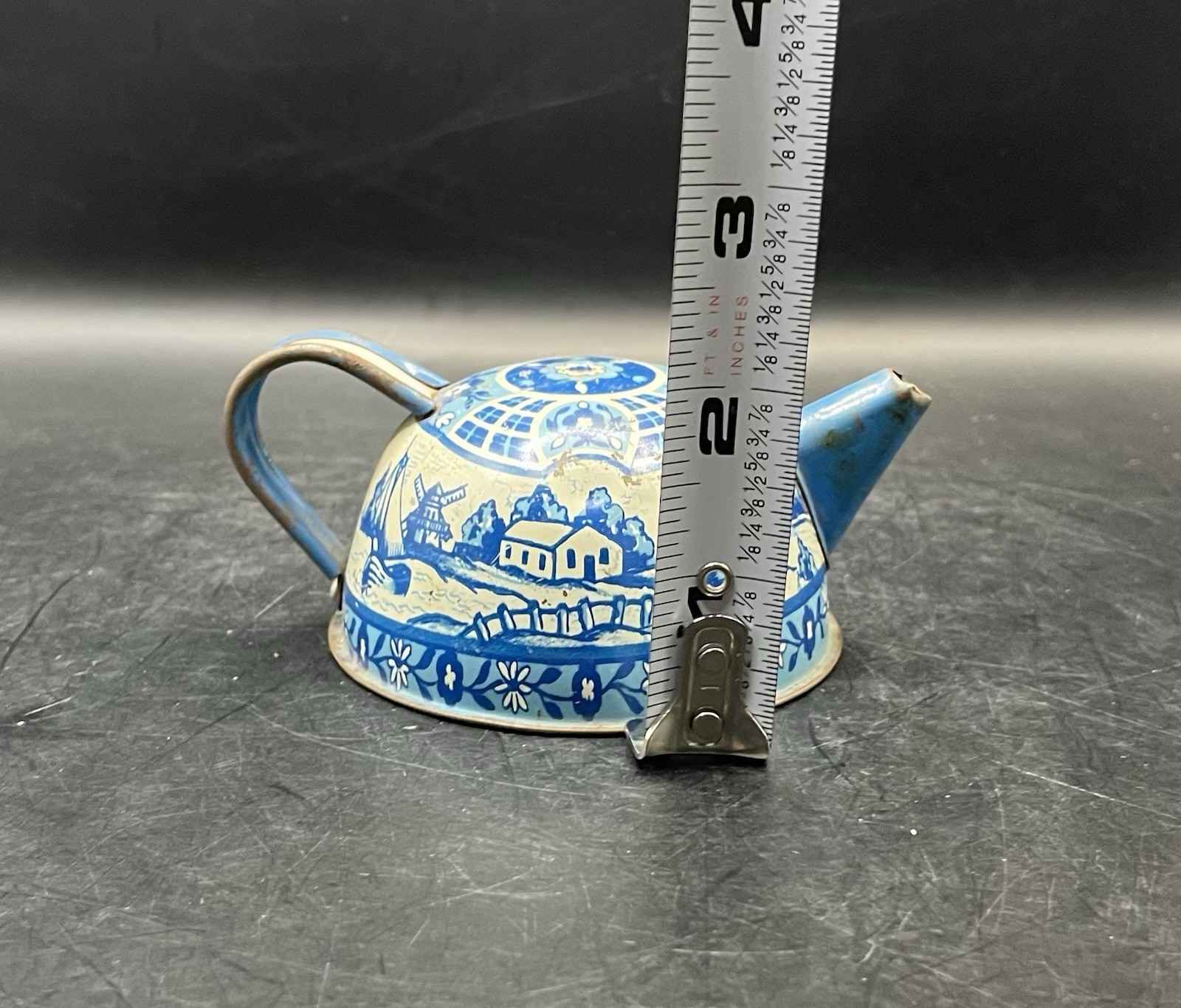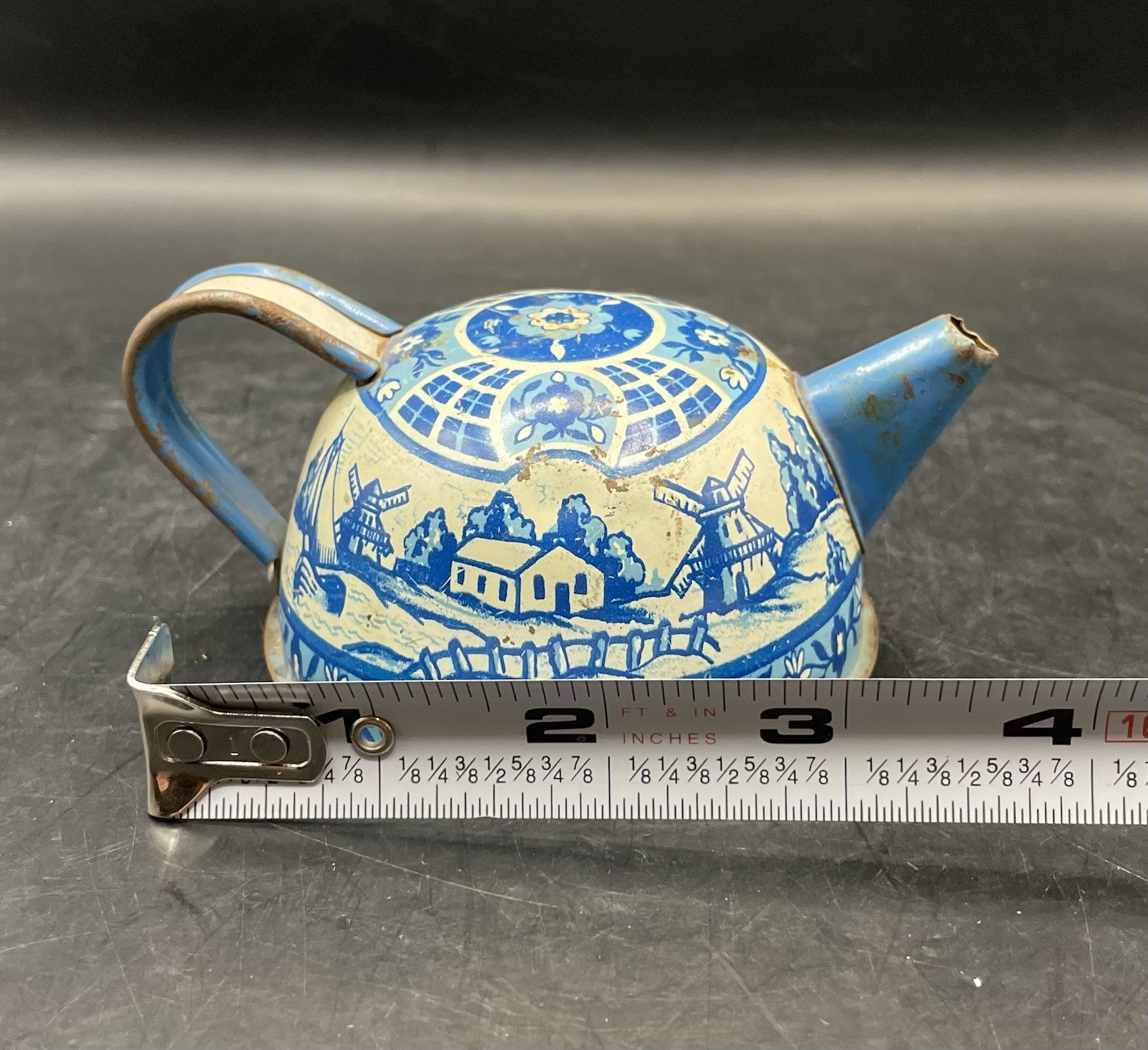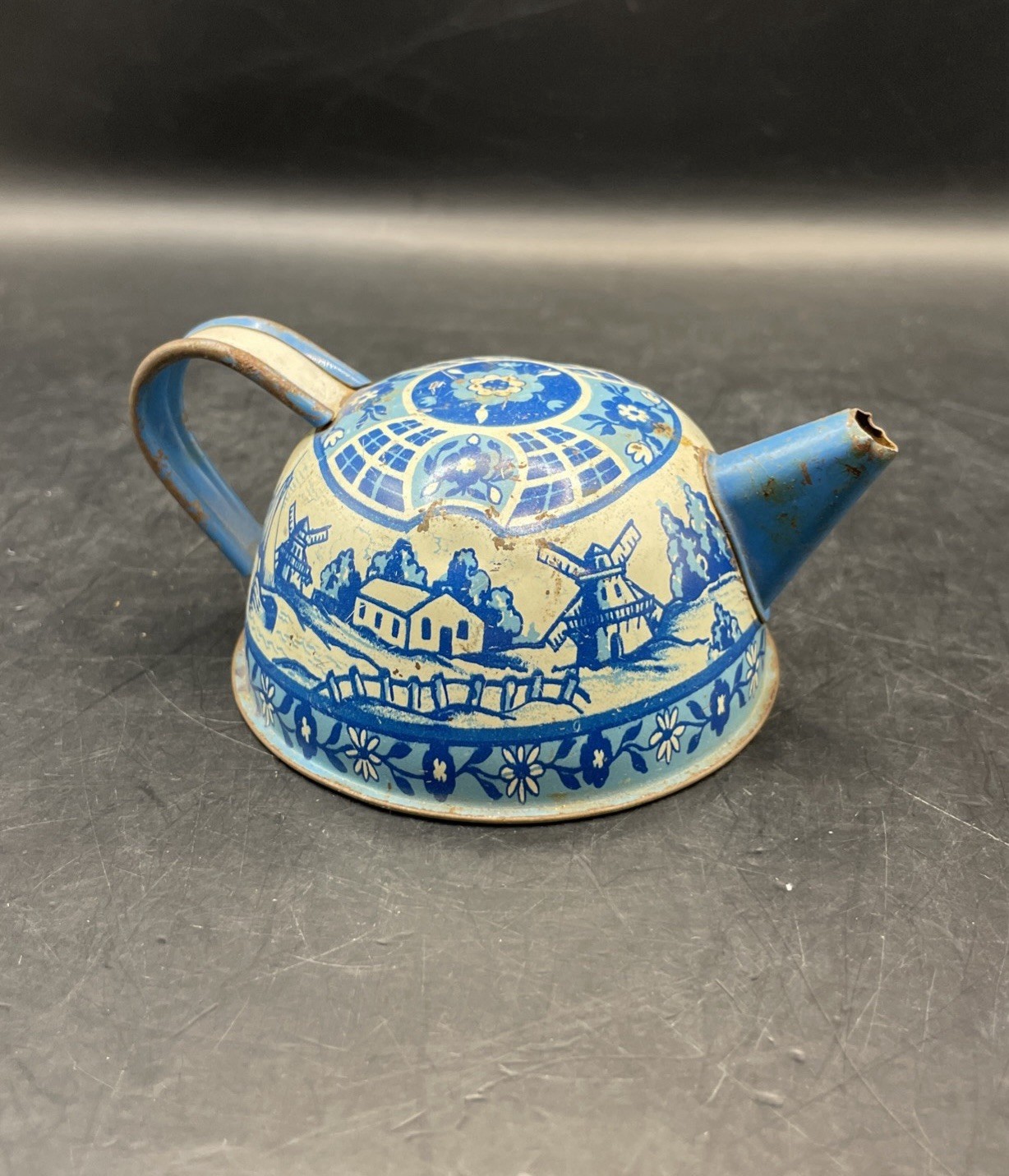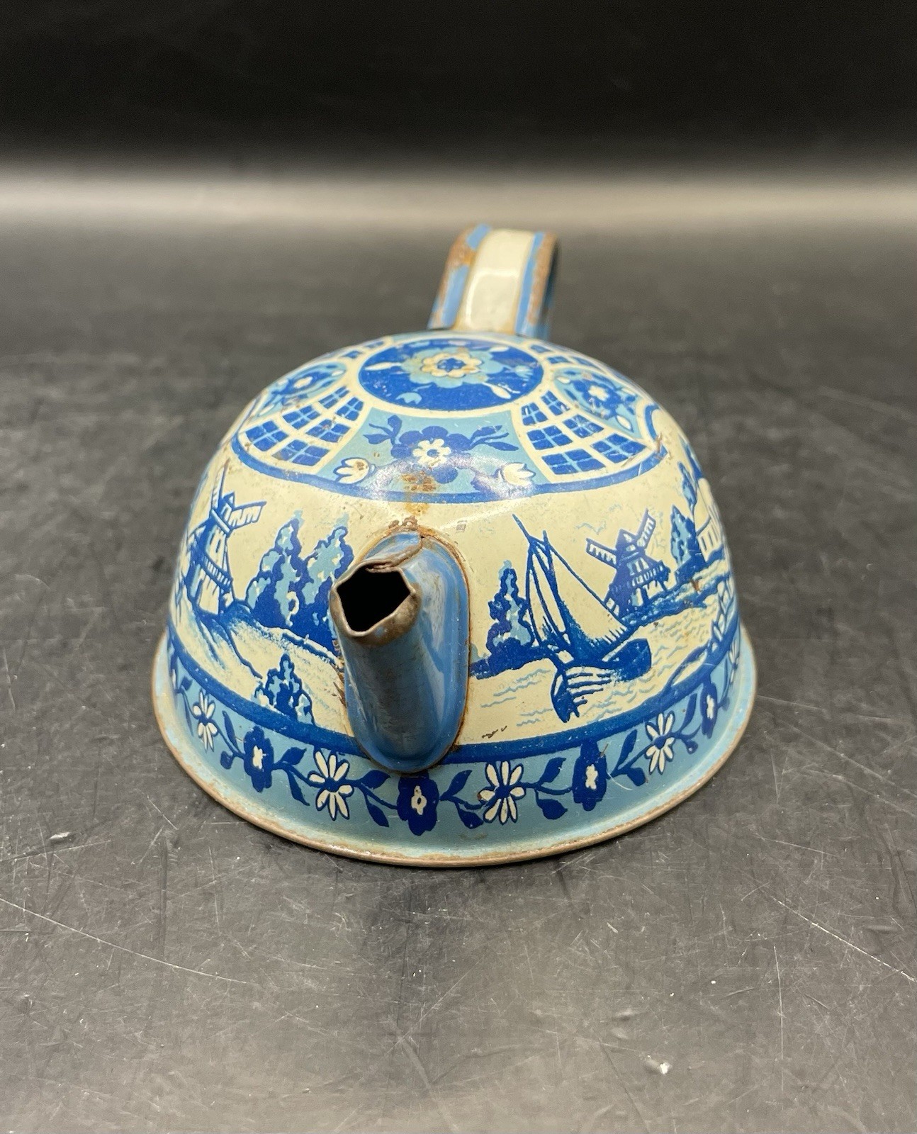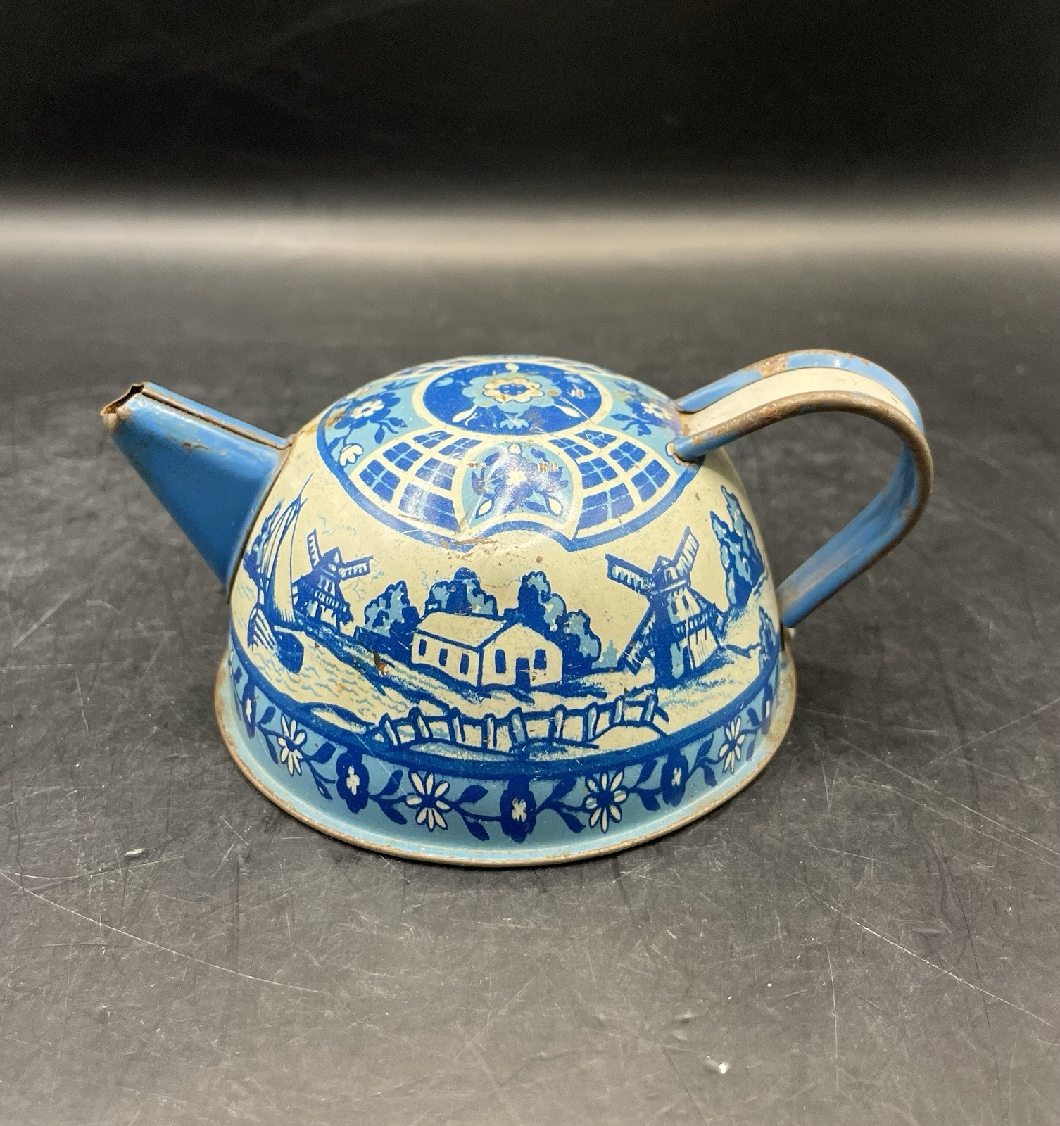 Vintage Tin Litho 1940-50s Wolverine Delft 5 Piece Child's Tin Tea Set
