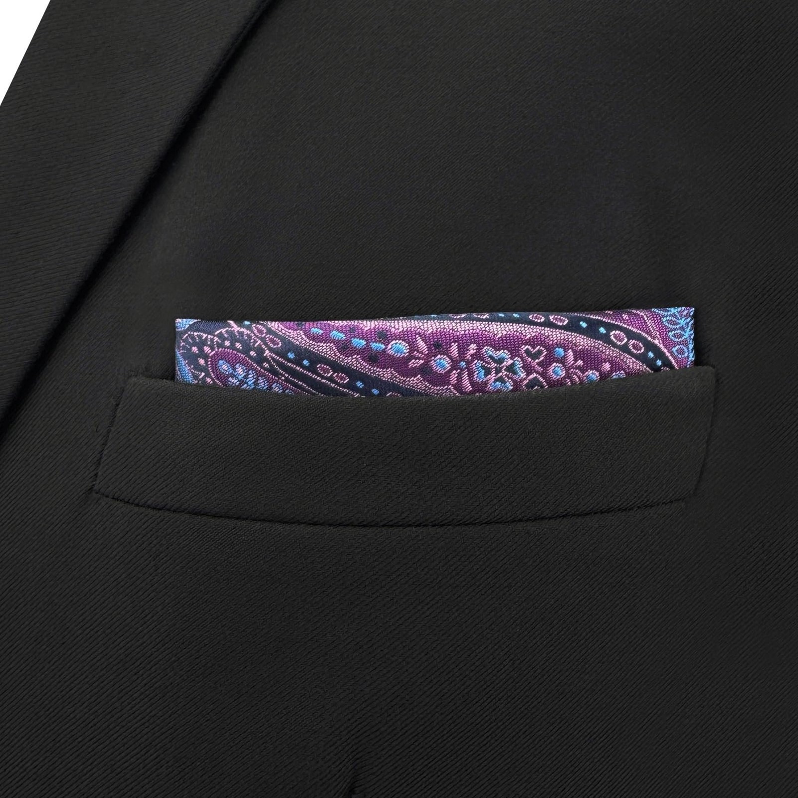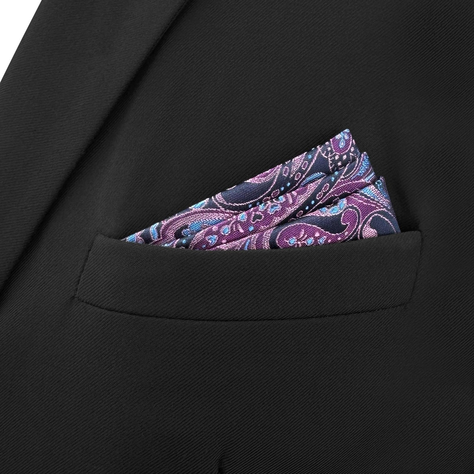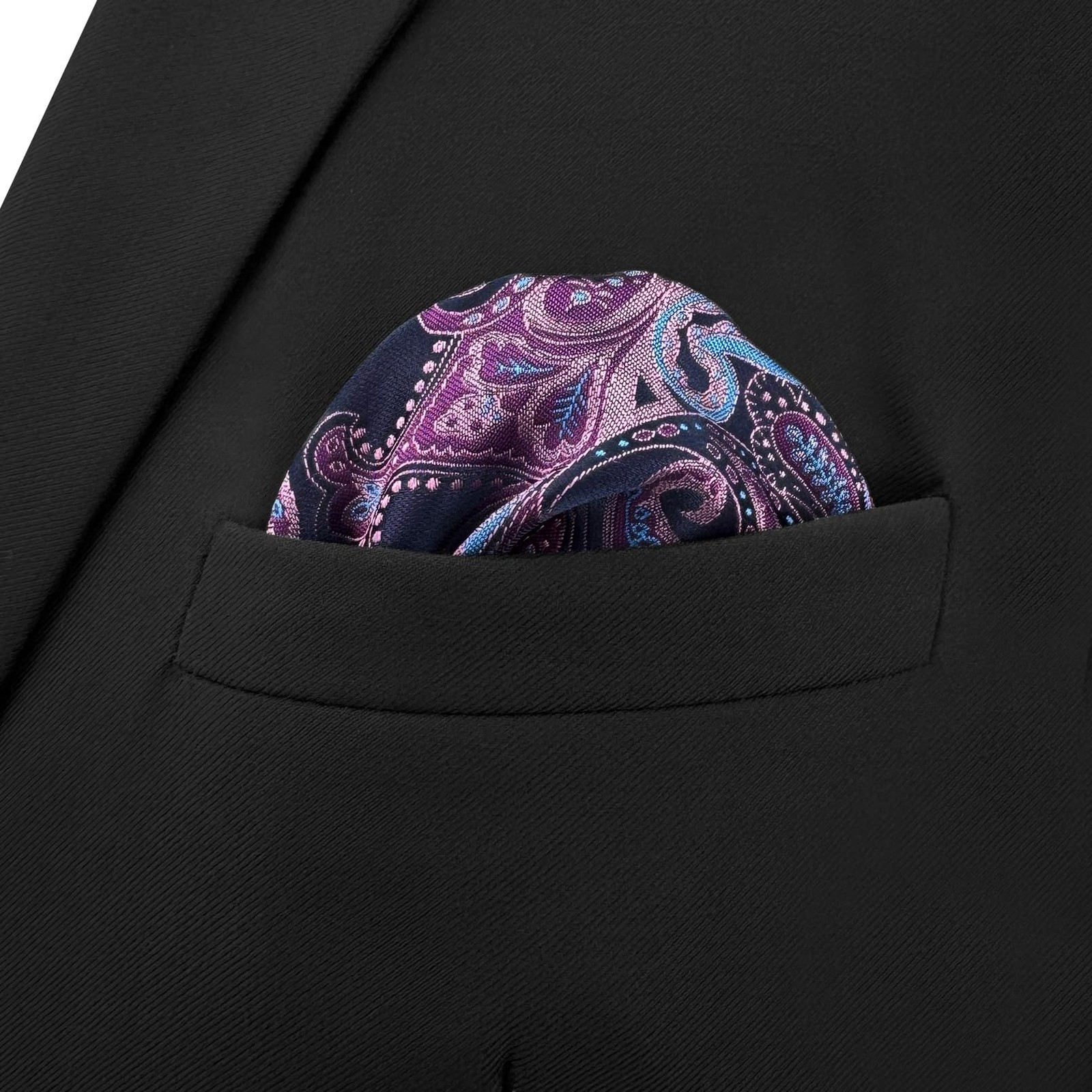 SHLAXWING Paisley Blue Pink Silk Pocket Square Mens Hankies Hanky