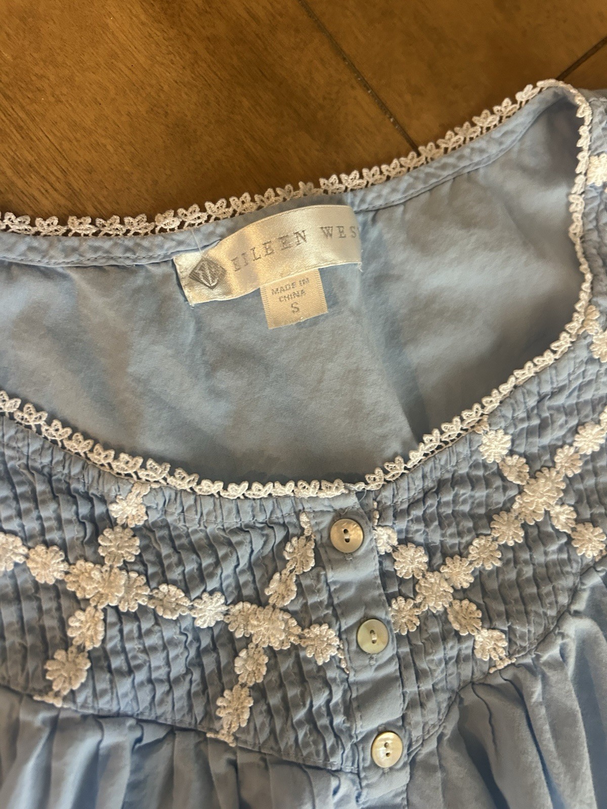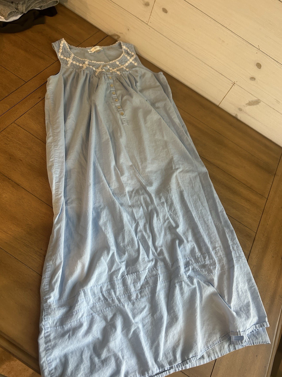 Eileen West Womens Sleeveless Blue Nightgown Cottagecore Detail Small Cotton
