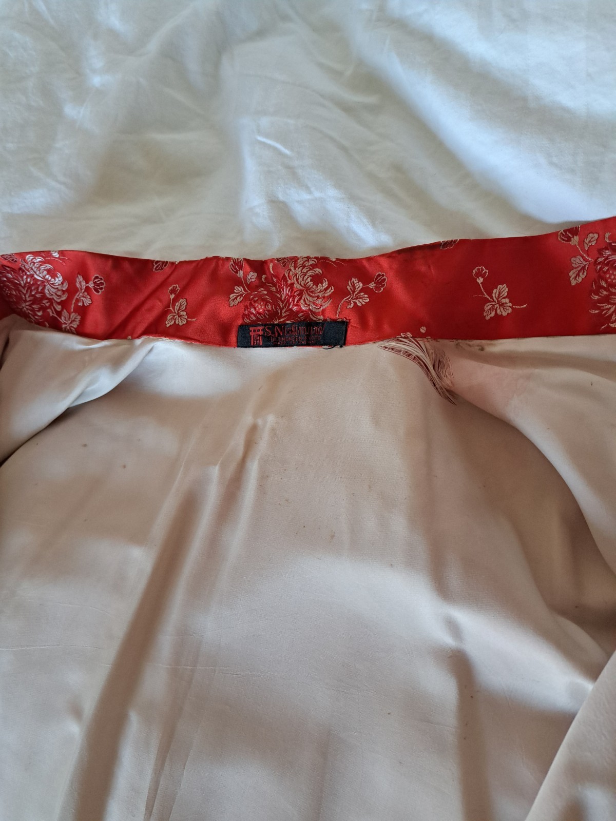как выглядит S. Nishimura Japanese Vintage Kimono Red Floral Silk фото