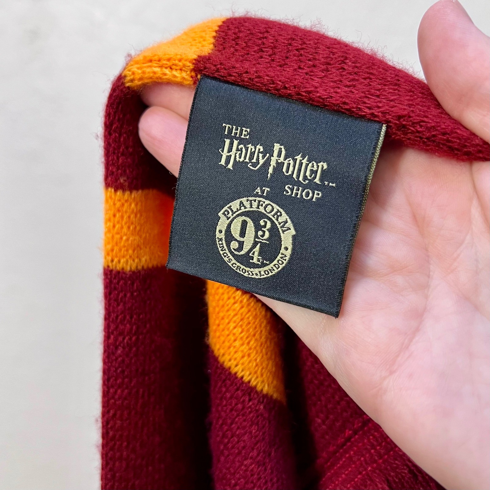 как выглядит Harry Potter Gryffindor Scarf Platform 9 3/4 Burgundy Gold Striped Knit Scarf фото