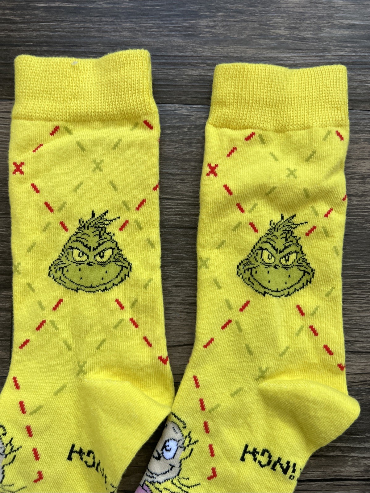 как выглядит 2025 Mcdonalds Grinch Meal Socks - Yellow Cindy Lou Who - Open Package, Unused фото