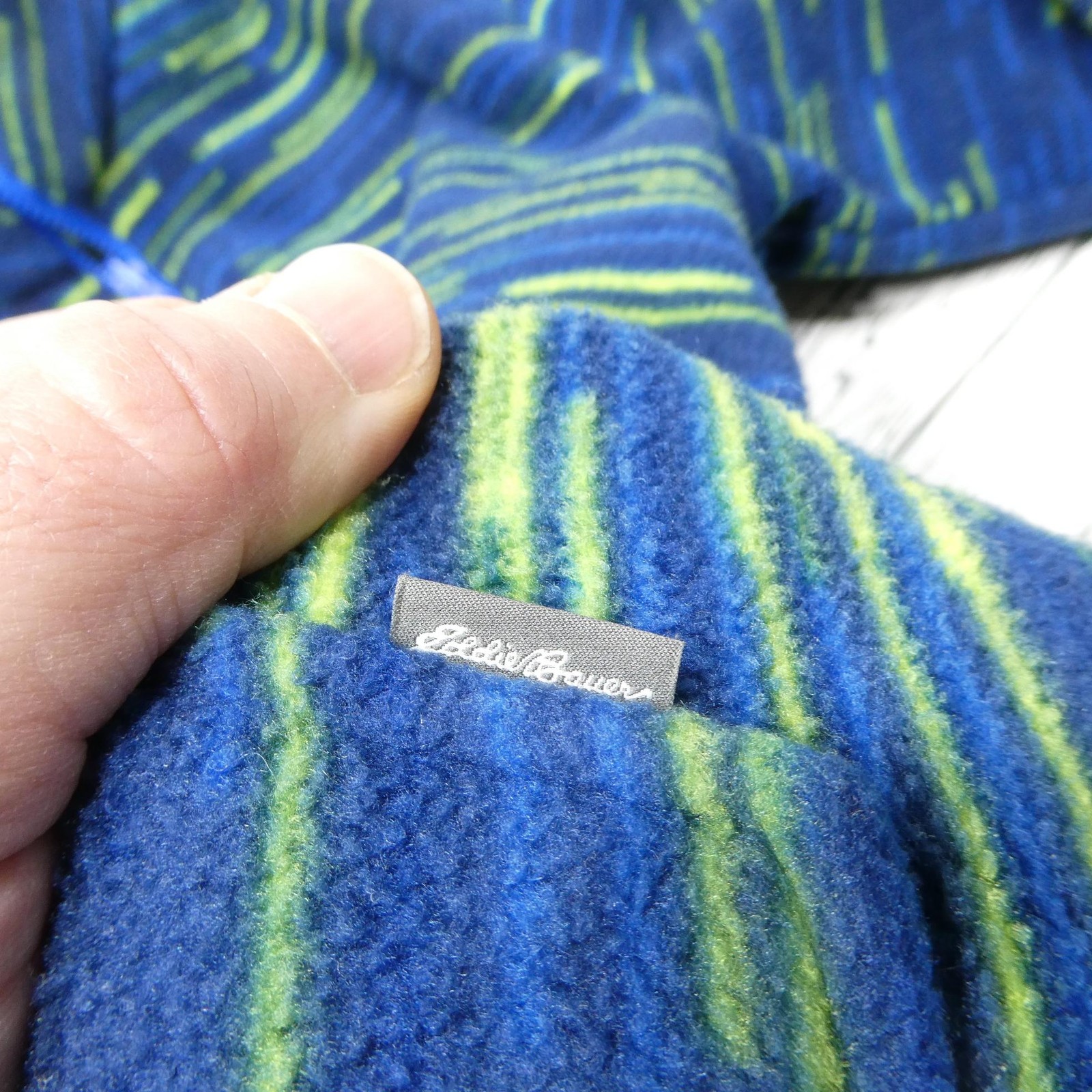 как выглядит Eddie Bauer Jacket Kids XL 16 Blue Striped Fleece Full Zip Pockets Outdoor фото
