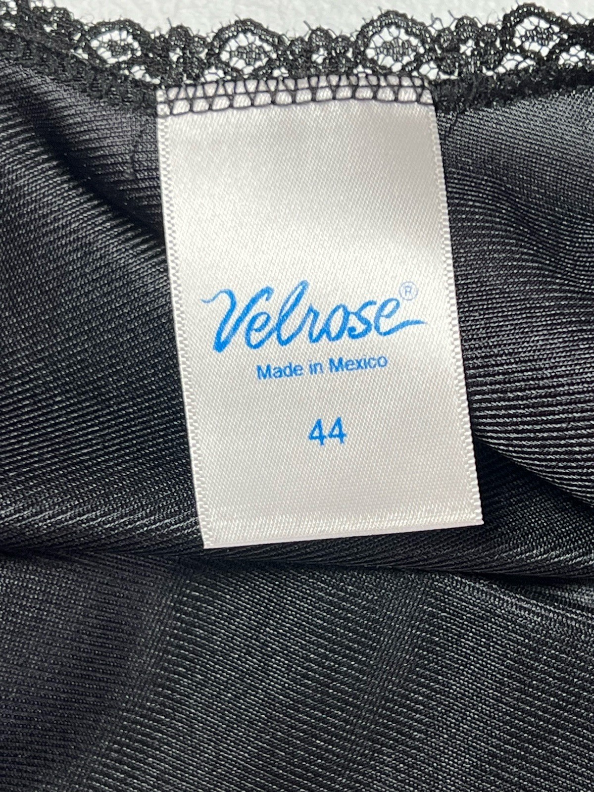 Velrose Black Full Slip Size 44 Nylon Lingerie Under Dress Lace Trim Classic